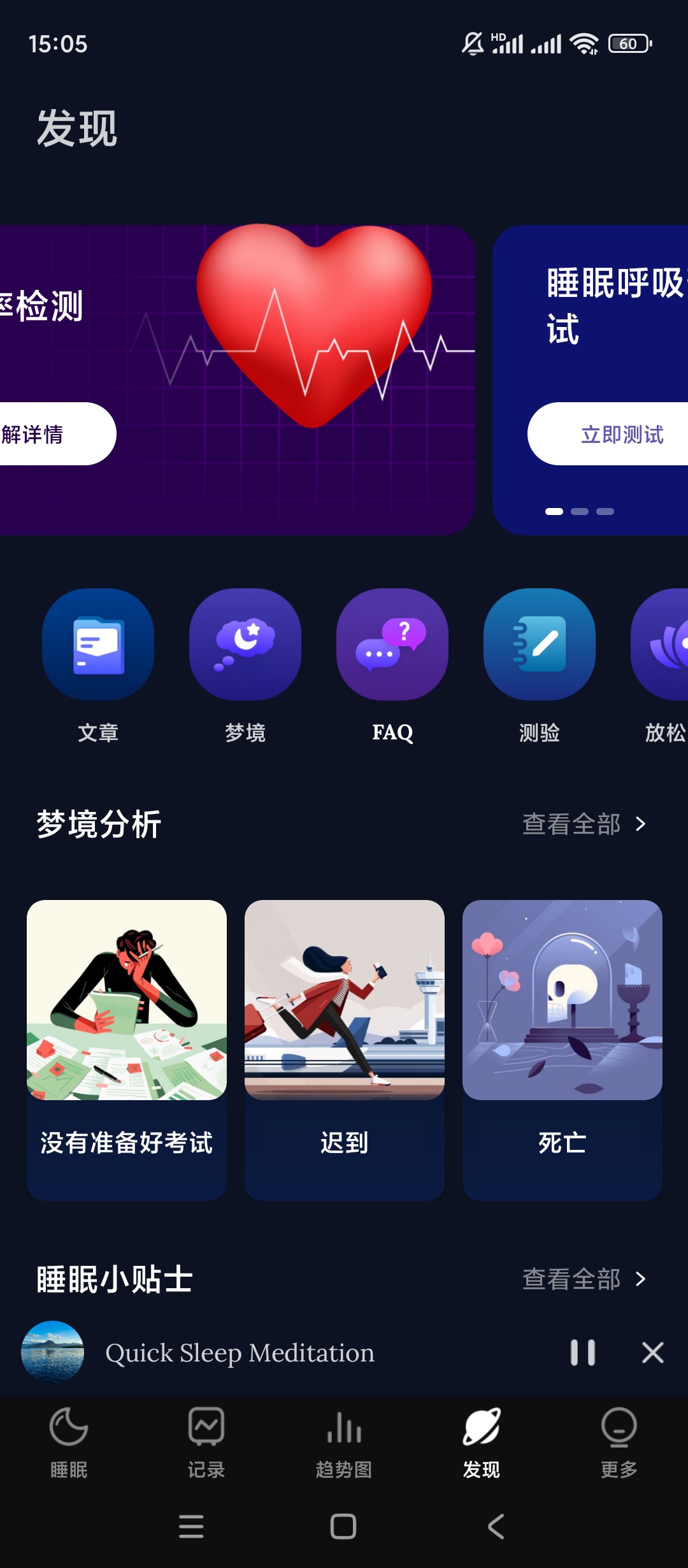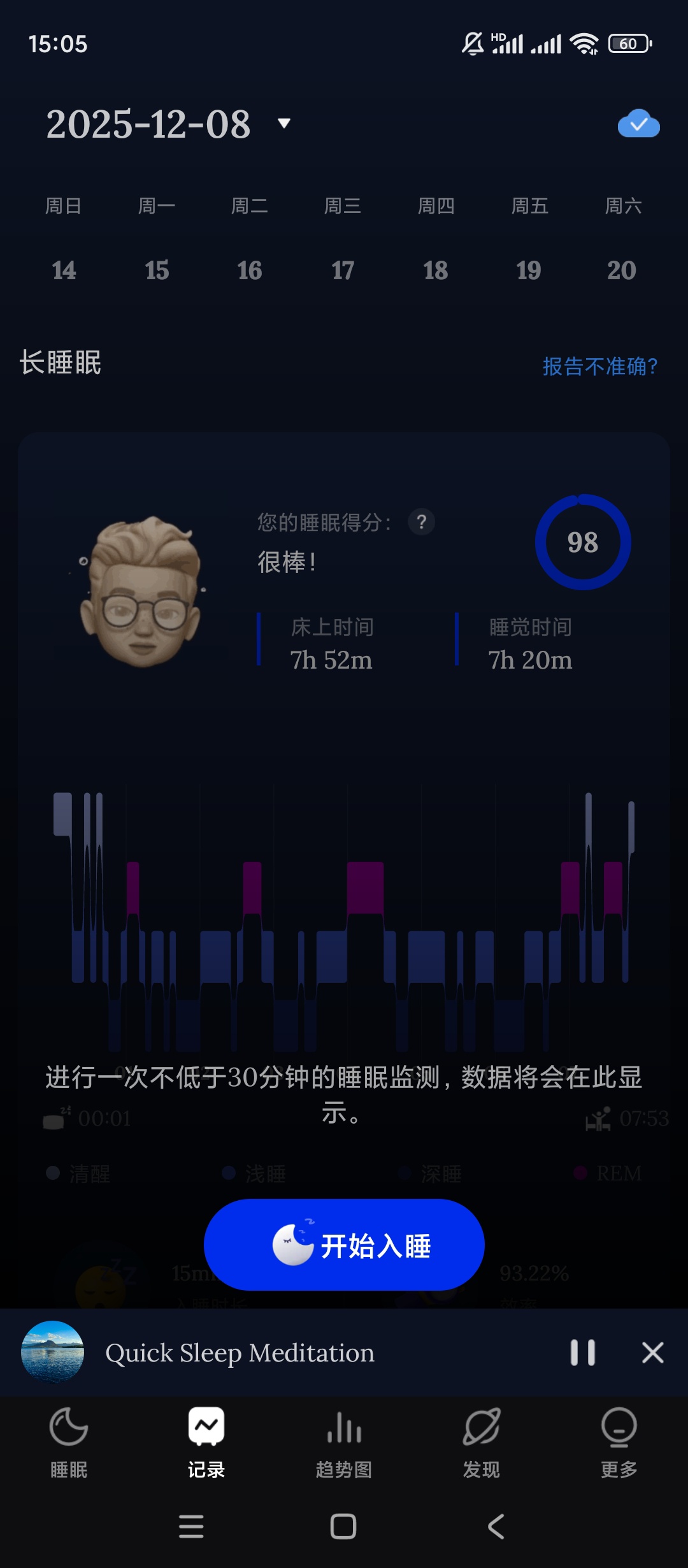 【官方介绍】:Sleep Tracker Premium「Sleep Monitor 睡眠监视器」可帮助您跟踪和记录睡眠周期详细信息。Sleep Monitor 睡眠监视器还有一个智能闹钟,可以提醒您晚上早点睡觉,并在早上轻柔地叫醒您。此外,睡眠监视器还提供轻松的睡眠音乐,帮助您睡得更好。