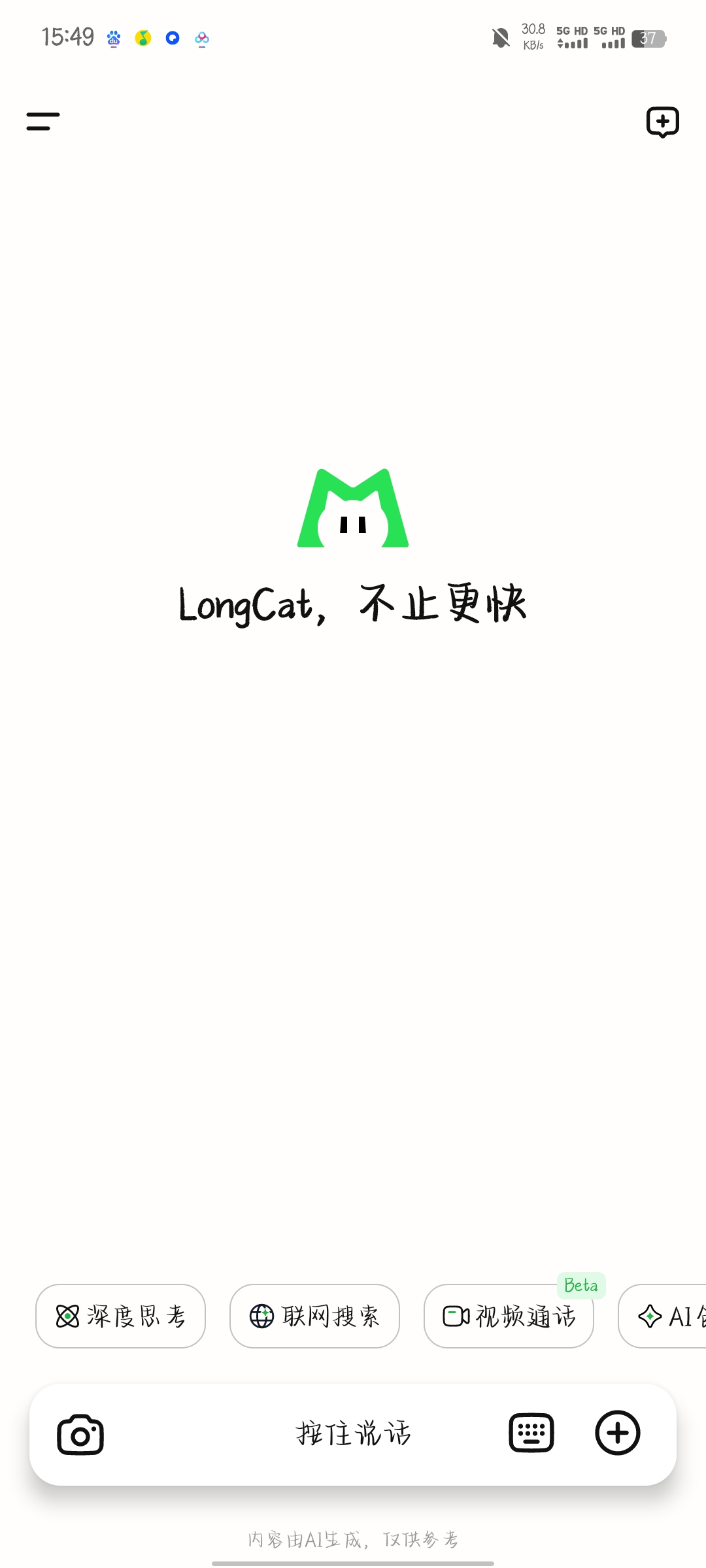 【软件介绍】:longcat是每天打造的一个全新大模型,是她上线的首款AI通用助手App。很多的功能都已经是聚合在了里面。用户可以通过访问器官网或者是在本站下载客户端app来进行使用,有需要的人,赶紧来试试吧。