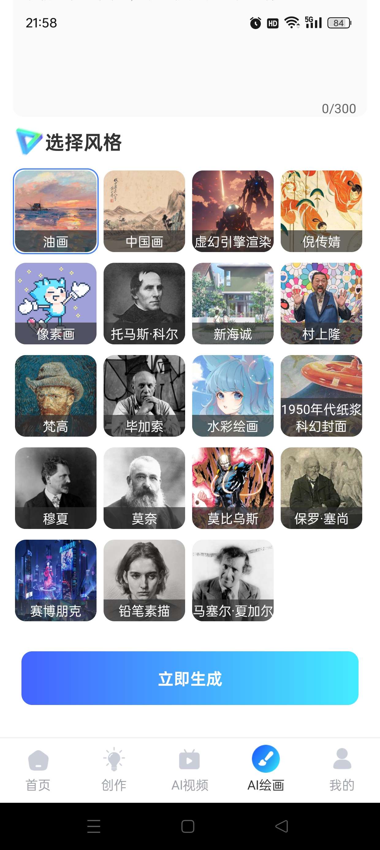 AI绘画接入了混元自研文生图模型,只需要输入关键词描述,就可以生成想要的艺术风格的精美图片,并且可以一键成片创作。