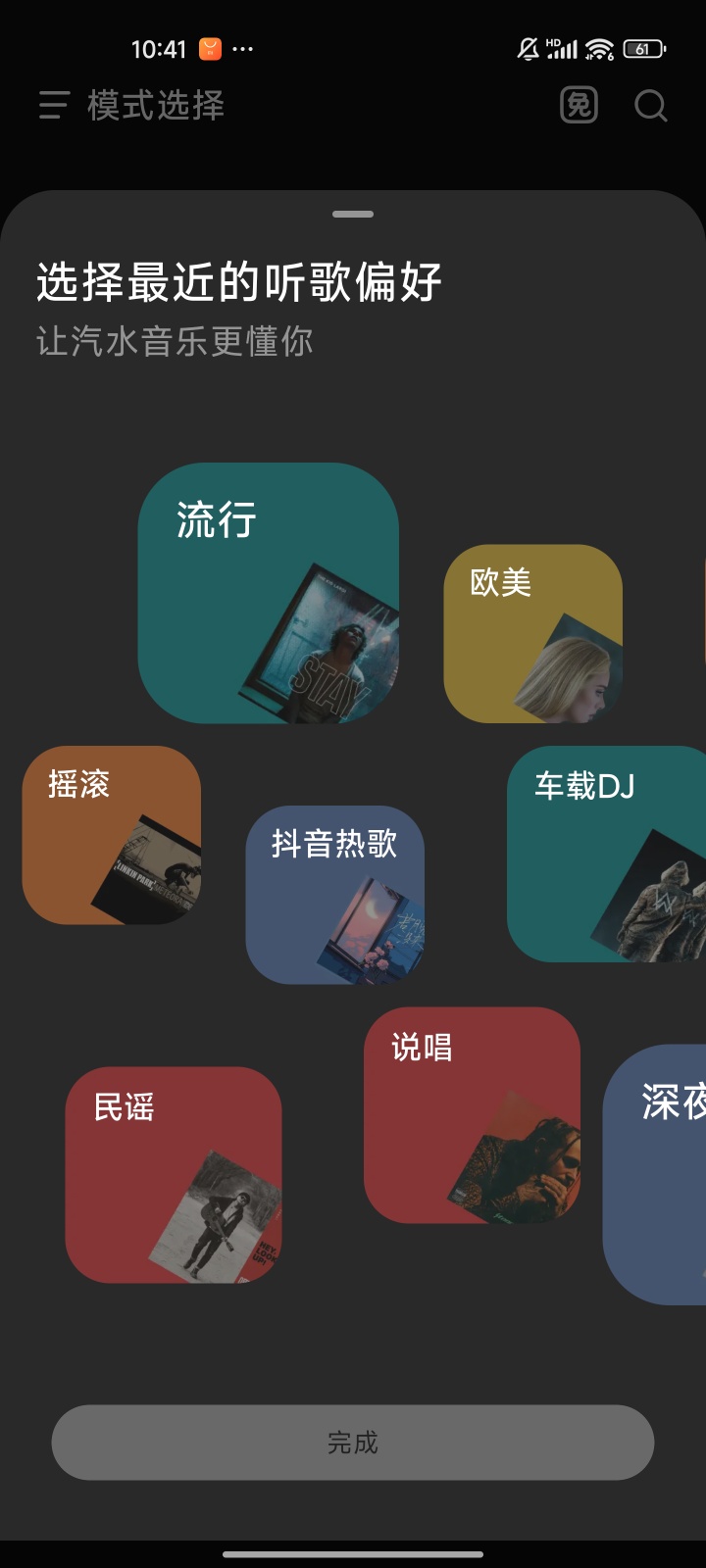 【软件简介】汽水音乐app下载是字节跳动旗下推出的一款神曲音乐软件!这里有大量的好听的音乐,为用户智能匹配个性化曲库,用户可以自由播放自己喜欢的乐曲。主打沉浸式听歌体验,播放界面即为主页,采用上下滑动切换歌曲的交互方式,并以动态视频作为背景视觉,增强感官体验。你可以在这里找到很多好听的热门抖音神曲,在这里免费聆听。