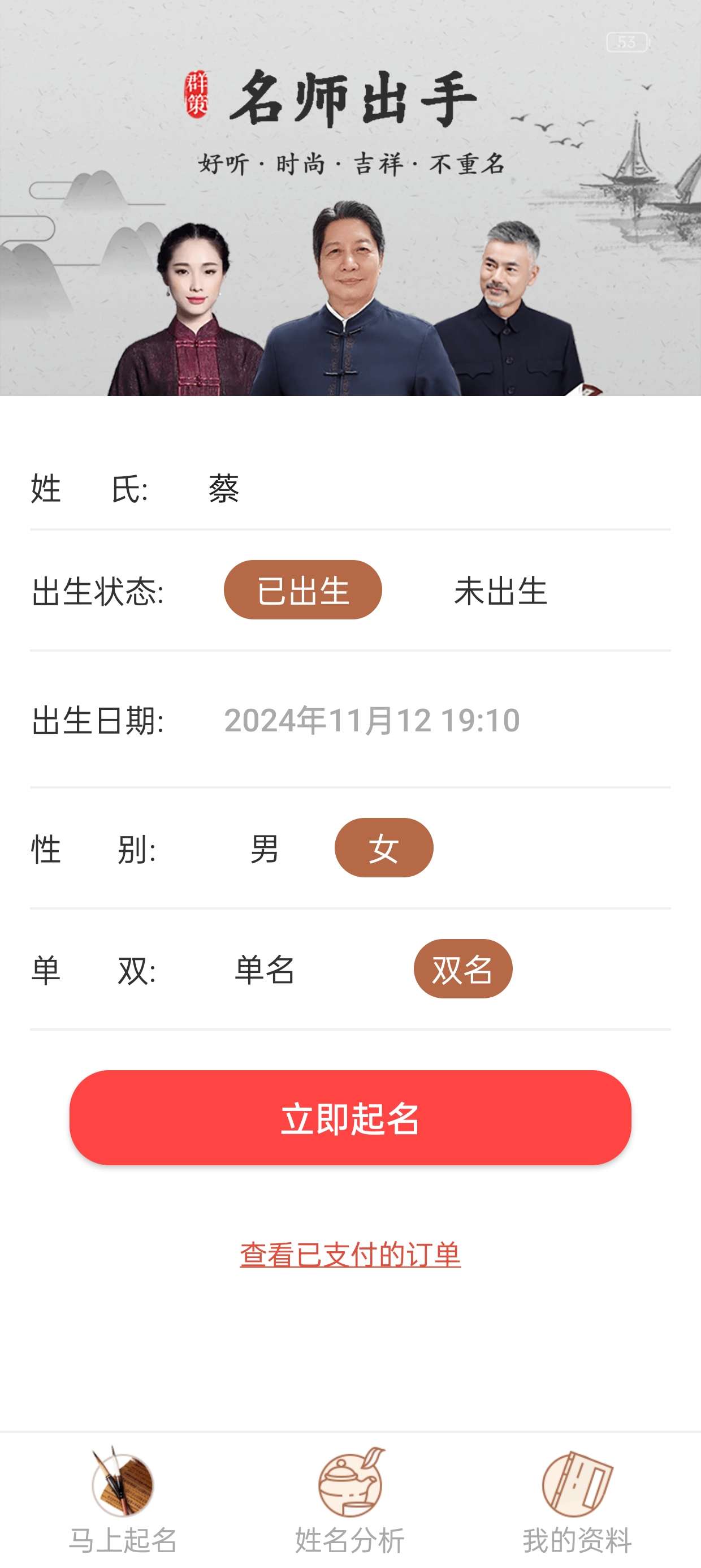 专业大师帮你起名取名 内购版直接白嫖98元
