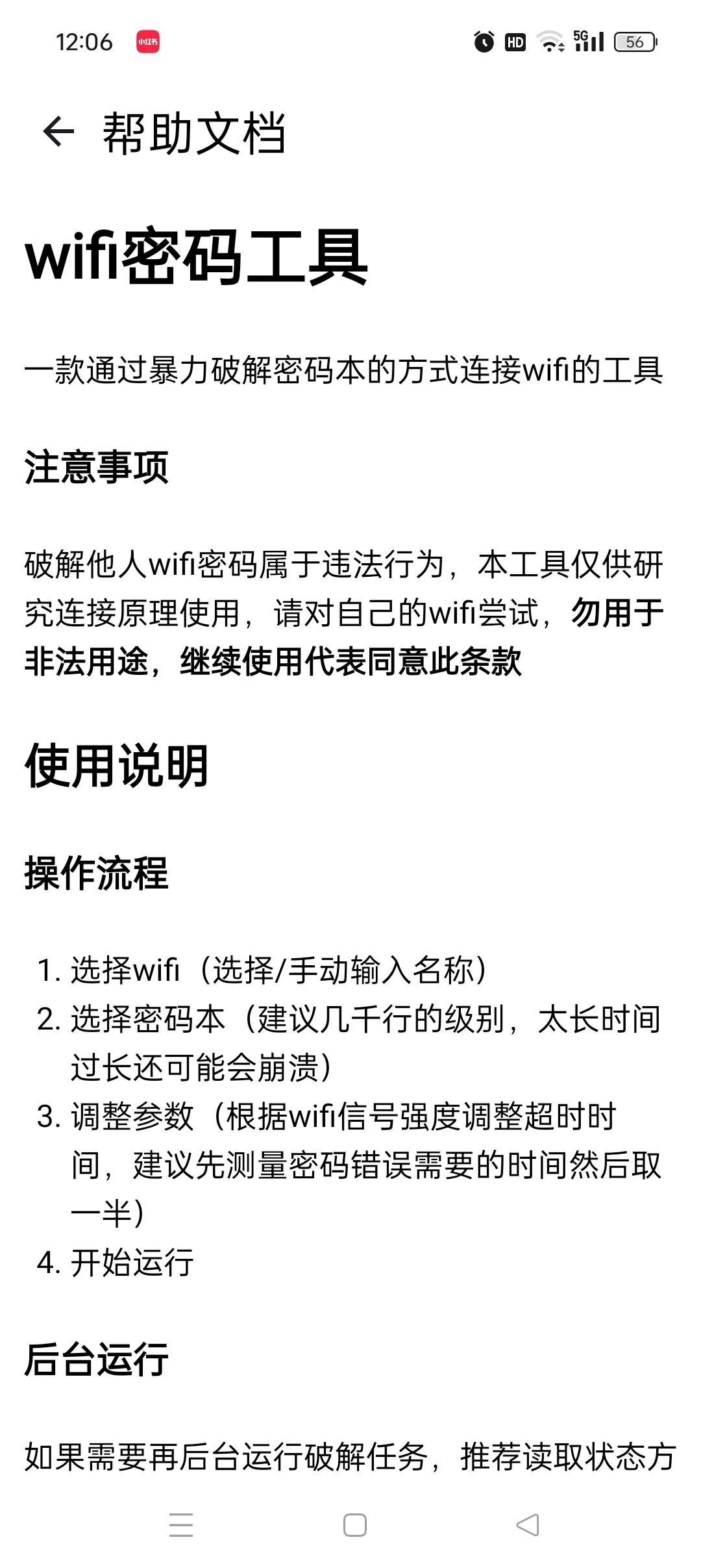 WiFi密码工具是一款网络安全测试辅助工具,软件可以通过密码本暴力修改的方式尝试连接WiFi网络,支持通过系统API或命令行读取网络状态,适配安卓系统,但需开启位置信息与定位权限以完成WiFi扫描,同时提供后台运行能力,软件主要是用于个人WiFi的安全测试,而非非法修改他人网络。