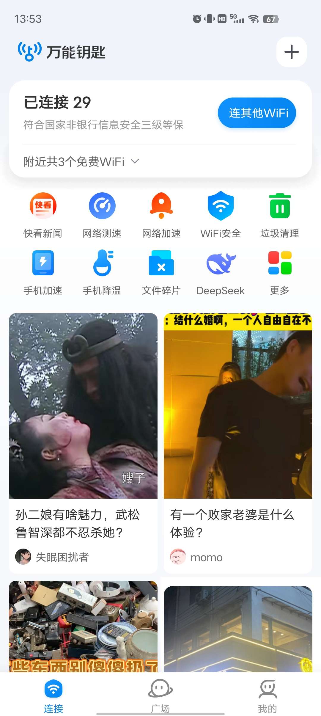 【软件简介】万能钥匙全新升级,安装包更小秒下载。无需打开App,碰一下秒连WiFi,极速认证,告别流量烦恼,畅享高速网络。