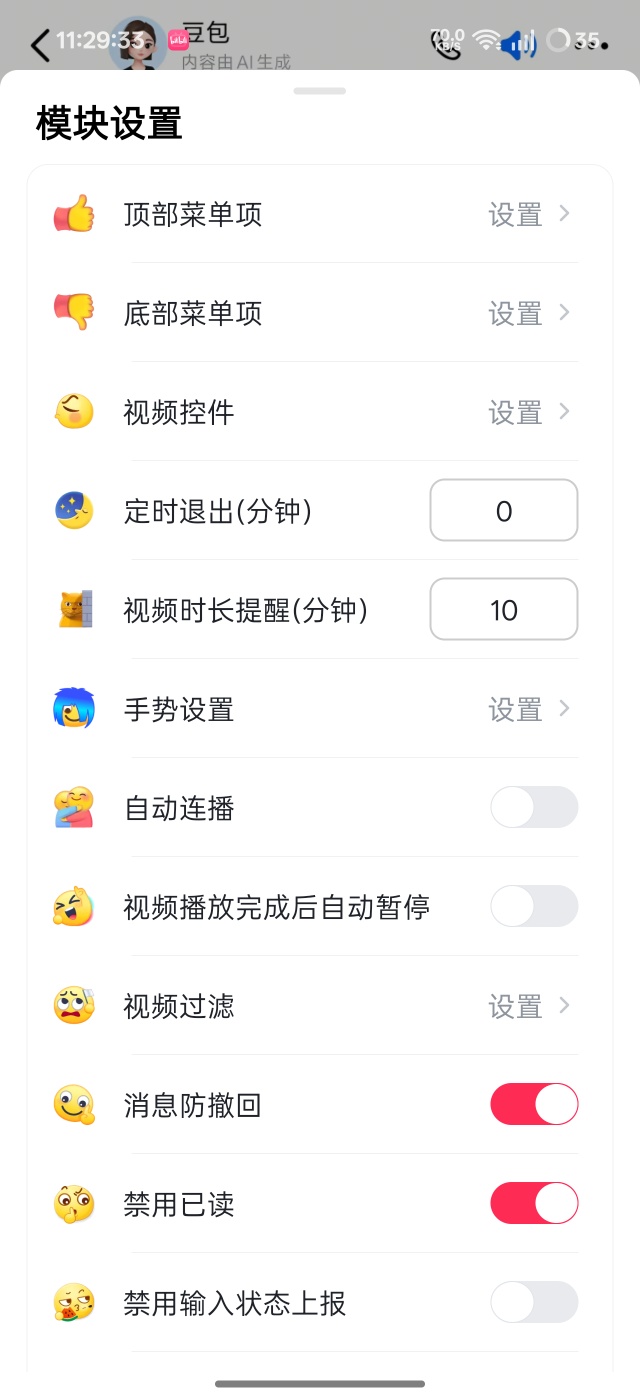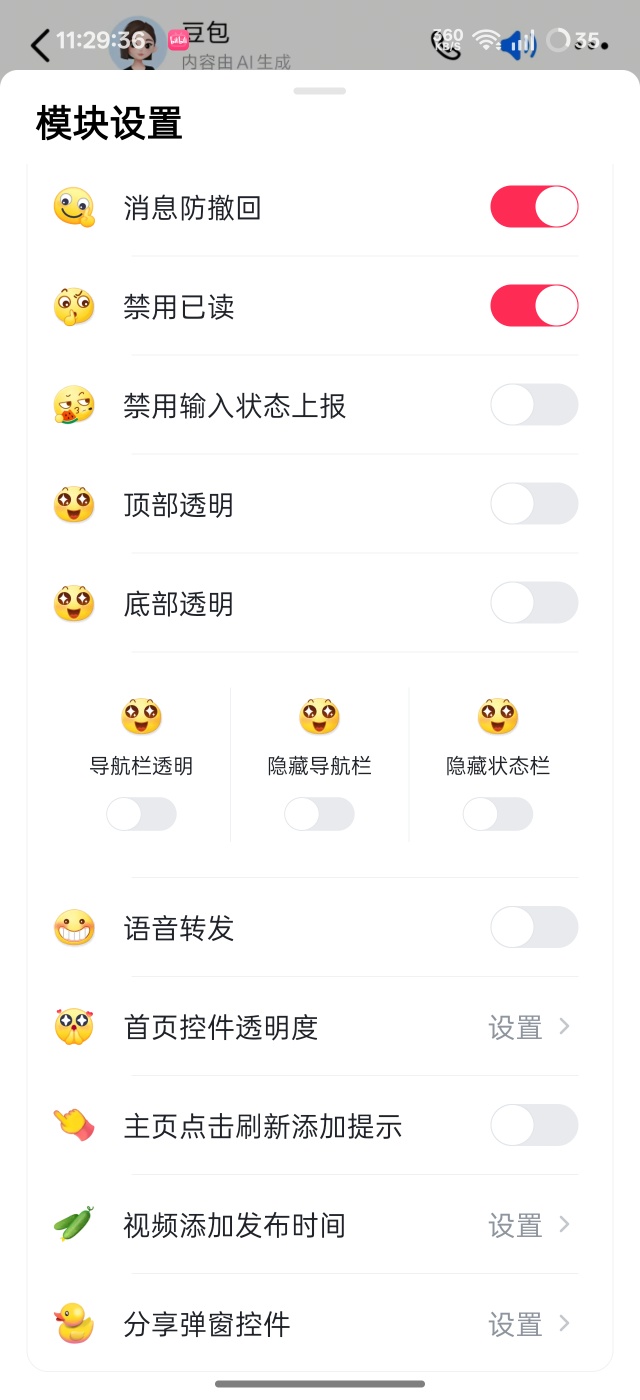 功能在分享页面 支持调节视频控件透明度 隐藏相关控件 查看视频信息等一大堆功能 但是好像不支持内置得用FPA或者LSPosed
