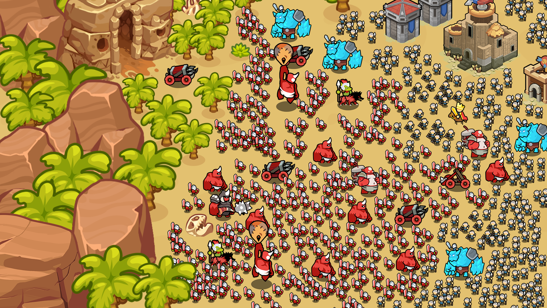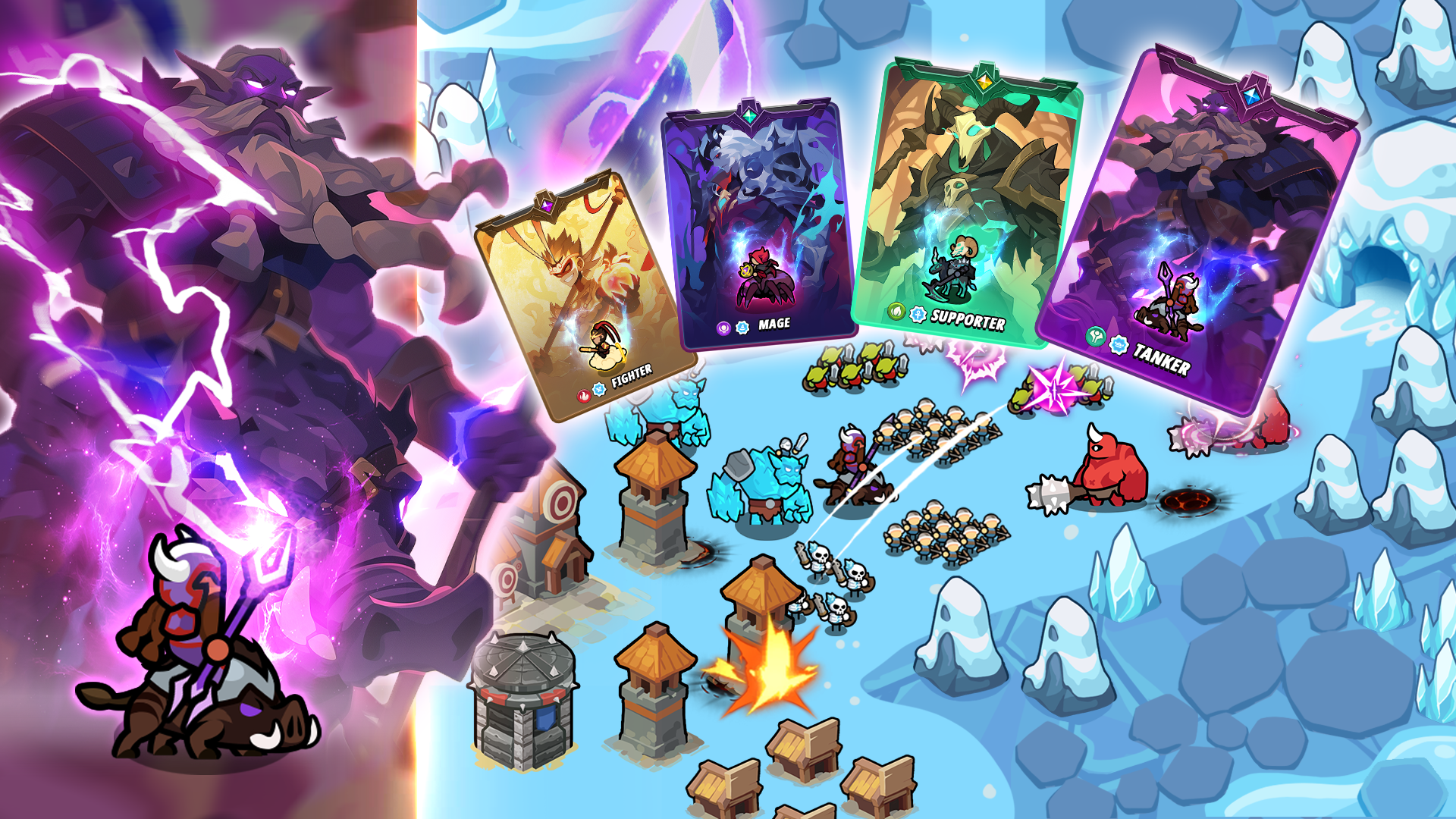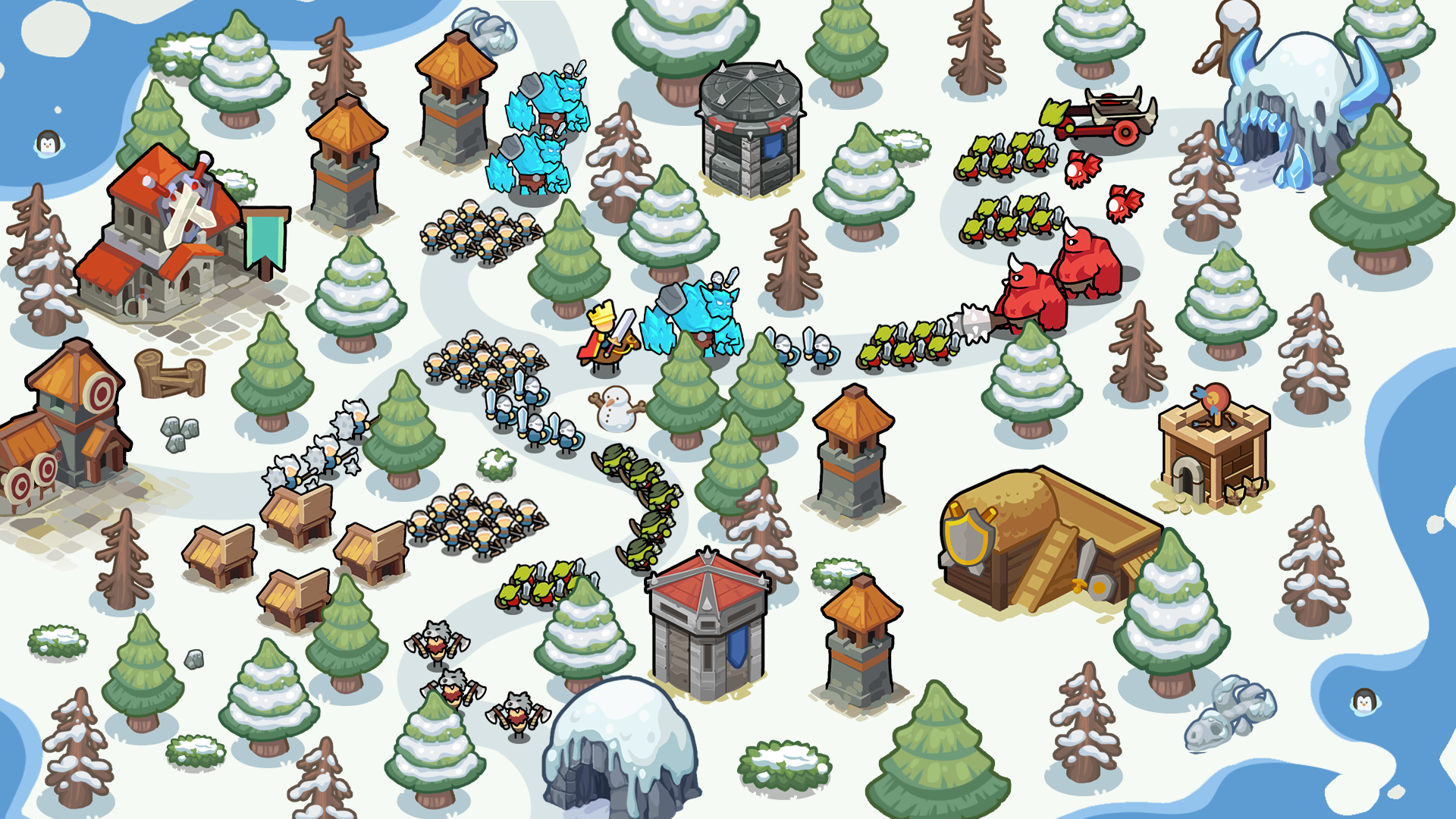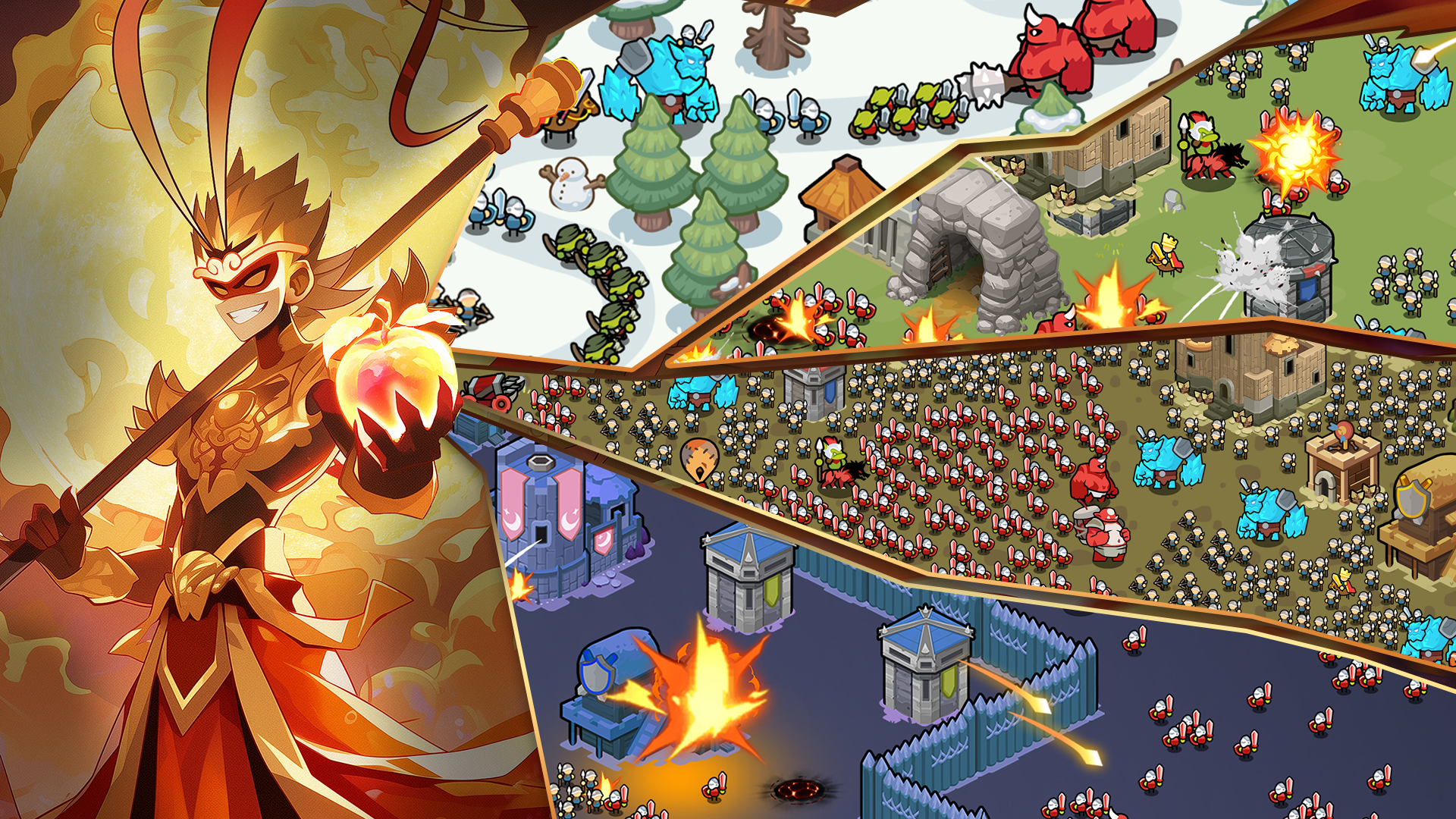 升级英雄、部队和建筑:增强你单位和堡垒的力量、伤害、范围和特殊能力,击败敌群。你的王国越强大,它的抵抗力就越