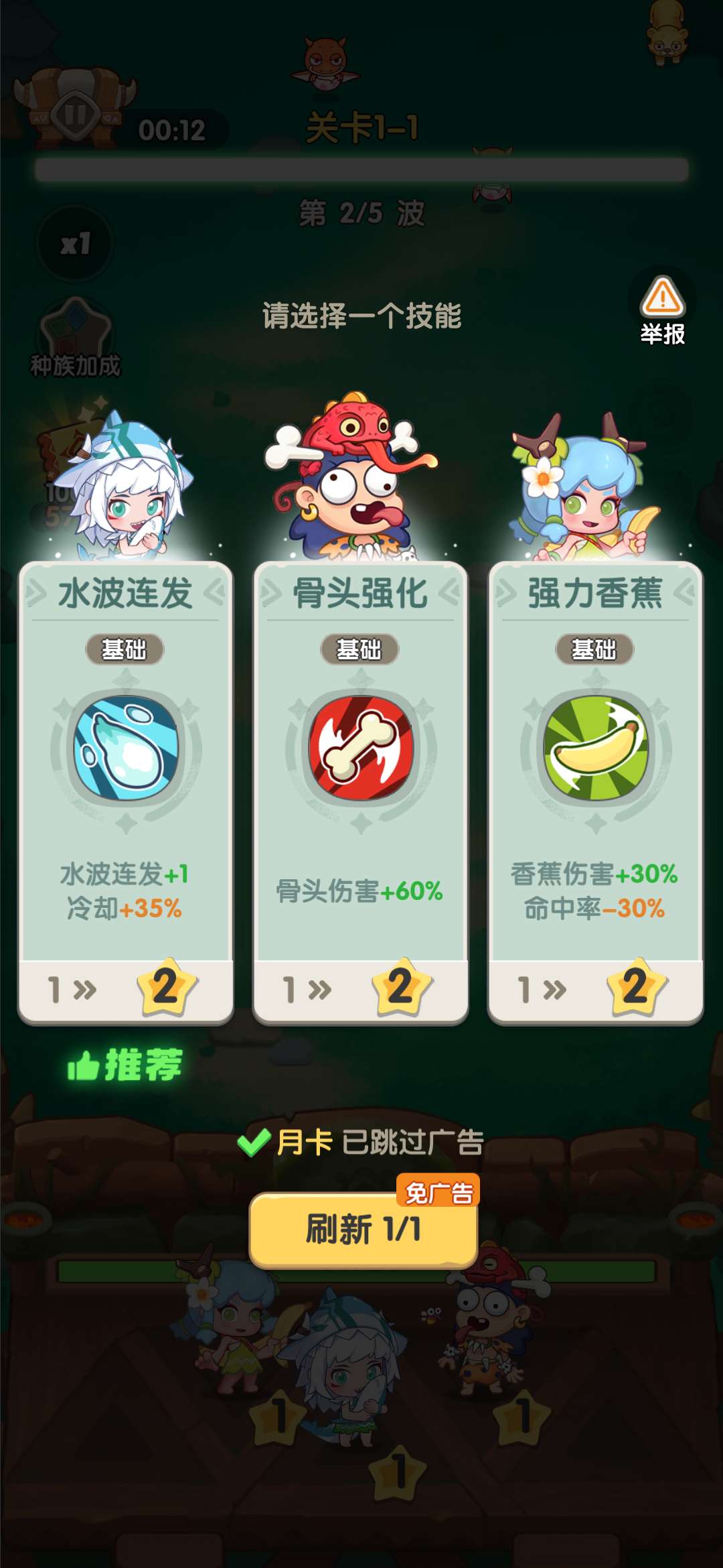【游戏简介】《一步两步》是一款超爽模拟经营融合肉鸽塔防小游戏,你将扮演部落酋长大人,召唤拥有强大技能的英雄,共同抵御怪物入侵!游戏风格可爱,角色、怪物及地图设计皆采用卡通风格。精心设计的音效为游戏增添趣味与氛围,游戏操作简单易上手,即使是没有策略游戏经验的玩家也能迅速掌握。