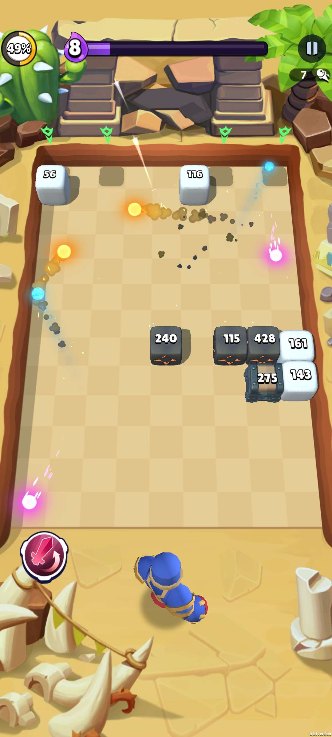 【游戏简介】“疯狂的方块破坏者”:选择你的英雄,释放一连串惊心动魄的魔法射击,对抗方块敌人的猛攻,保卫你的领地。策略升级,强化防御,成为方块世界的终极守护者!