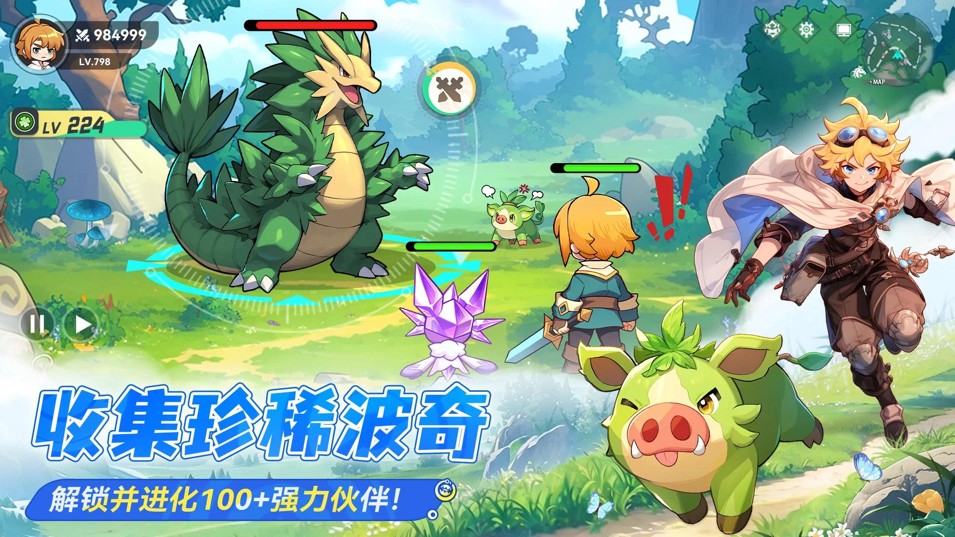 自动战斗,解锁章节,赢得丰富的宝箱。离线挂机,获取丰厚奖励,在成为怪兽大师的道路上不断精进!
