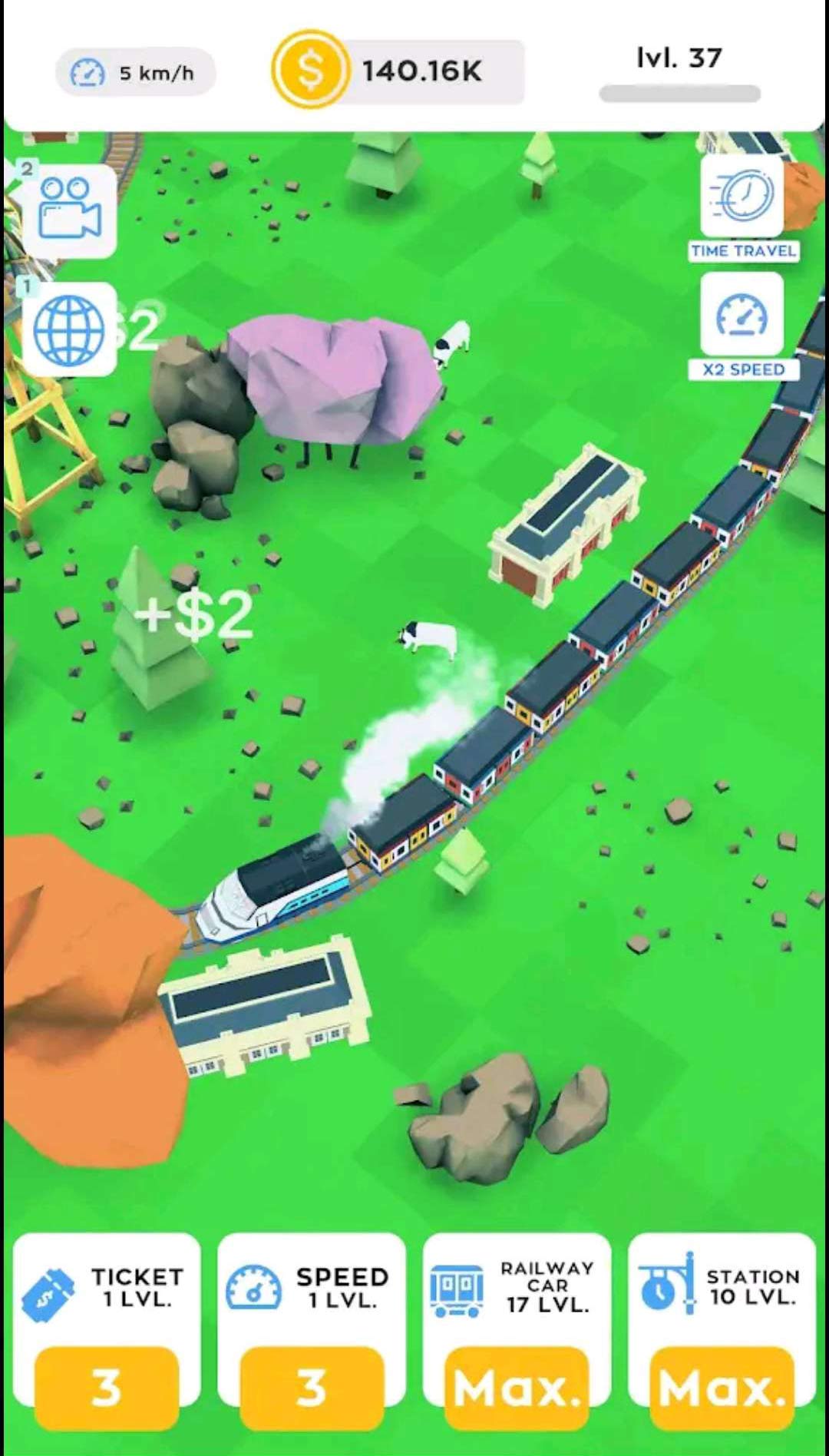 游戏发生在一个国家的地图上,以火车站为中心。玩家以少量资金和升级开始,但可以升级车站以增加收入、解锁新火车、建造更多车站并赚取更多金钱。