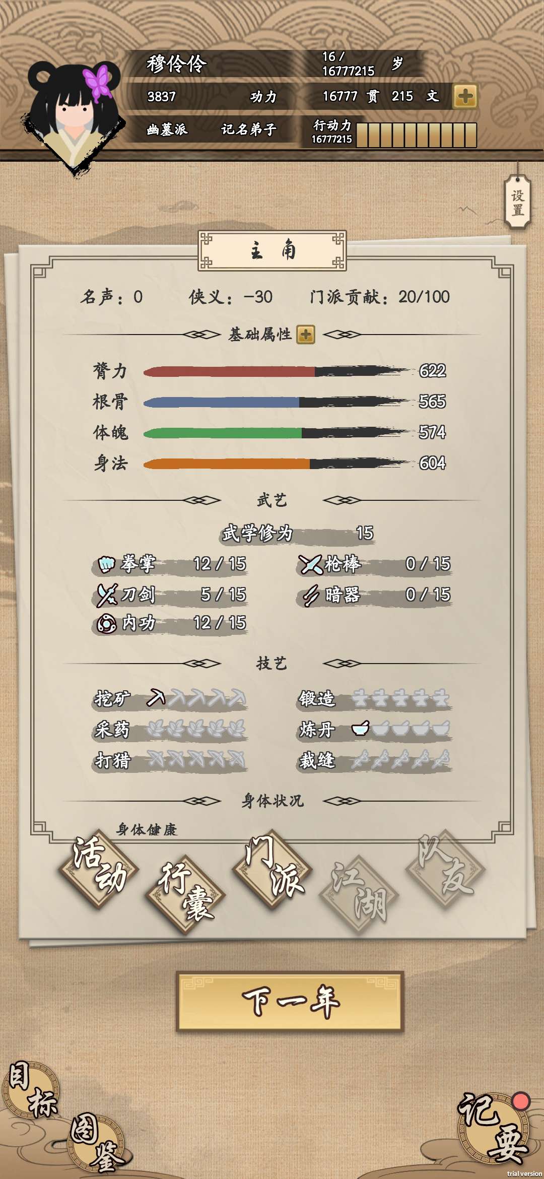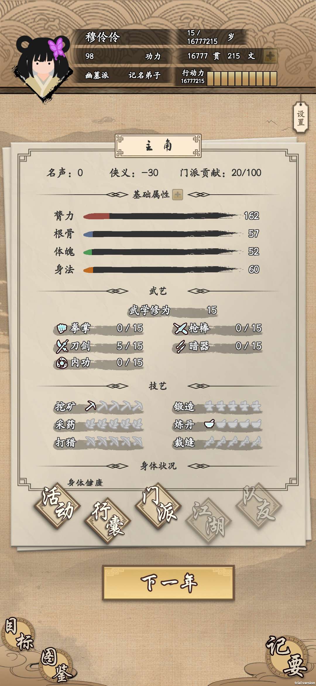自由决定出身,无论是生于热闹市井,在叫卖声中初萌侠义之心;还是长于神秘山谷,与飞禽走兽为伴练就非凡身手;亦或是出身武学世家,自幼研习高深典籍,都能塑造出独一无二的武侠形象。