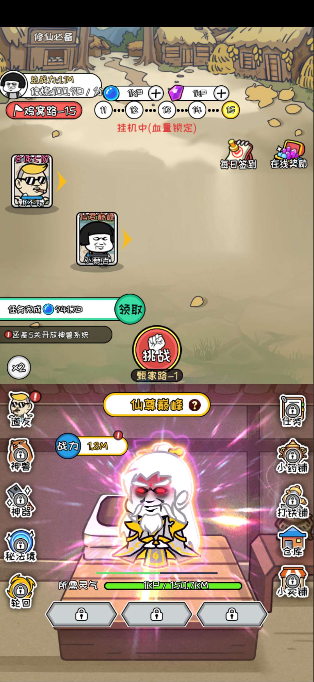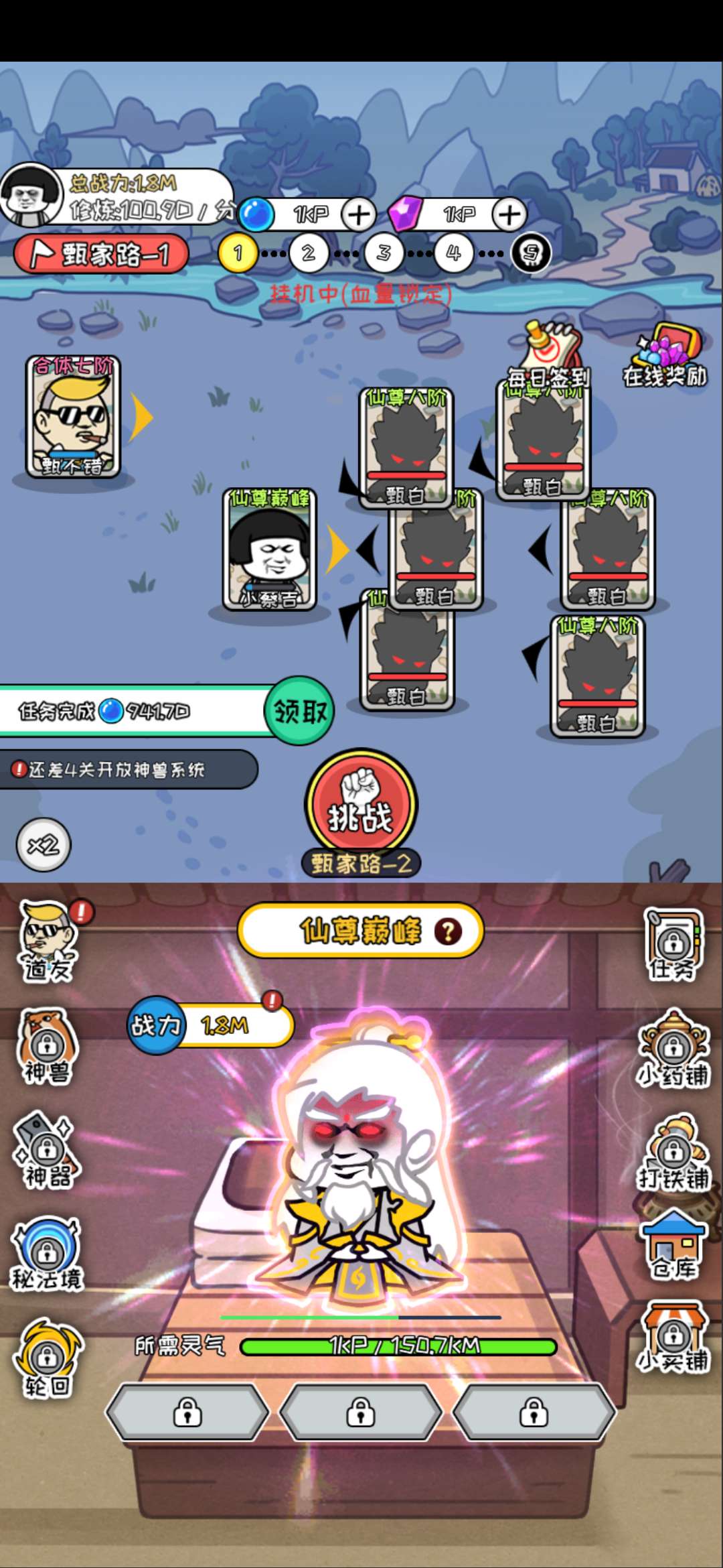 这是一款诙谐搞笑风格的放置修仙游戏,玩家将扮演收破烂的小蔡吉,在仙人的引导下收最多的破烂,修最好的仙,结交道友、开拓地盘、合成神器、收服神兽,渡劫成仙,走上人生巅峰!
