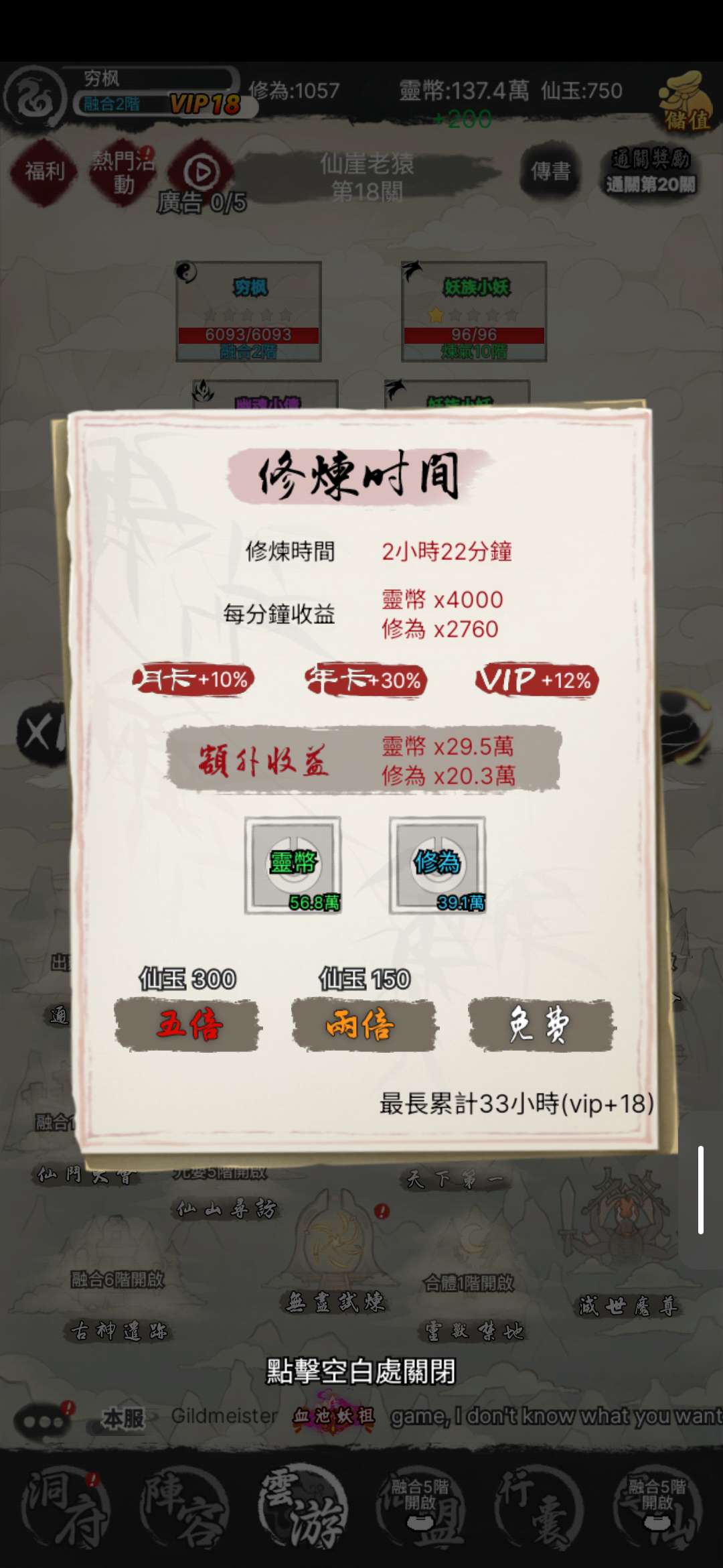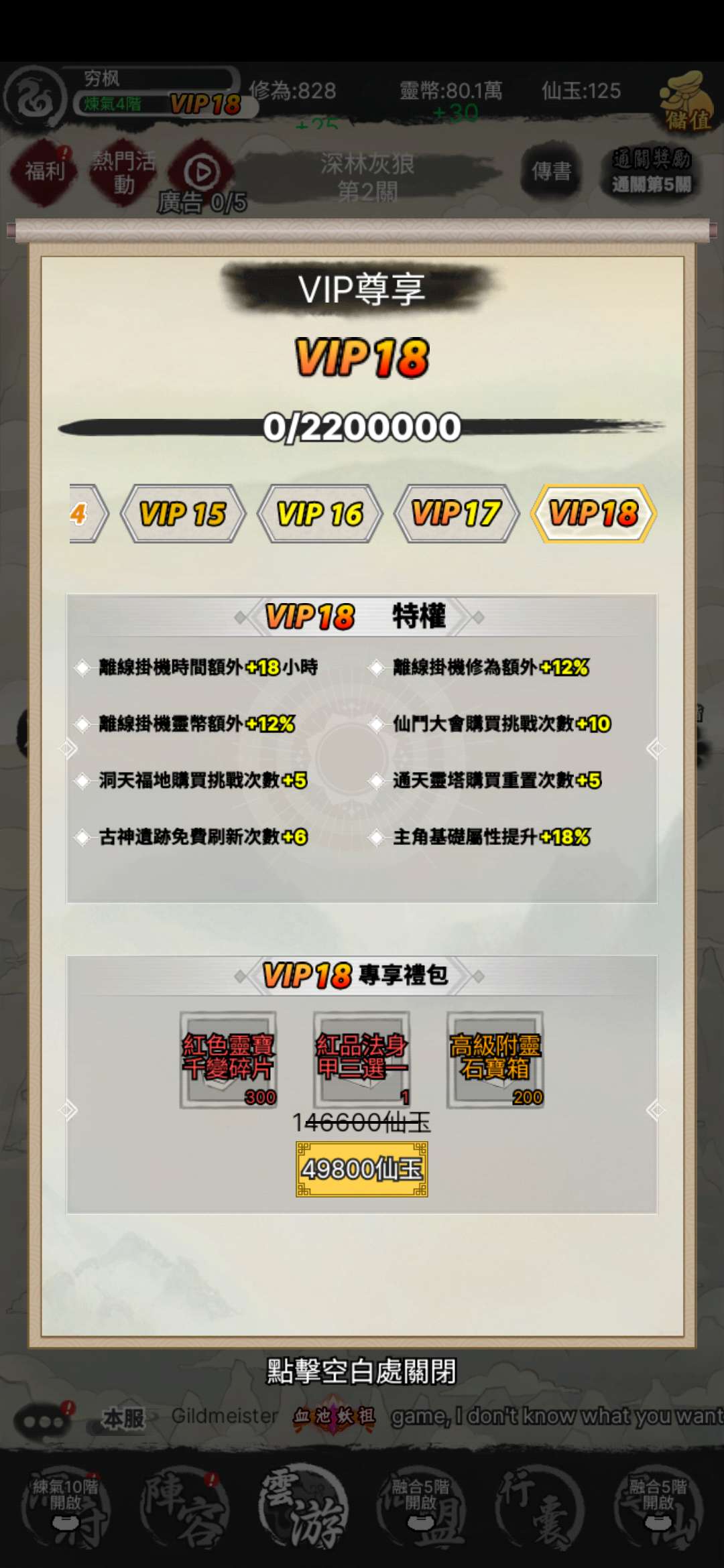 类剑气除魔,解锁本地满v特权,月卡,年卡,自动挑战等权益。