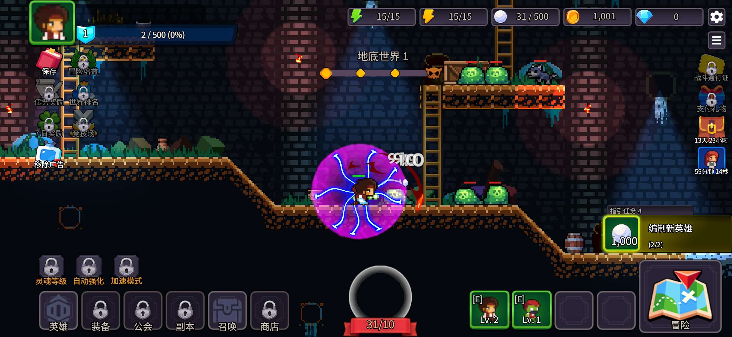 组建一支可爱的像素英雄队伍,击败怪物!