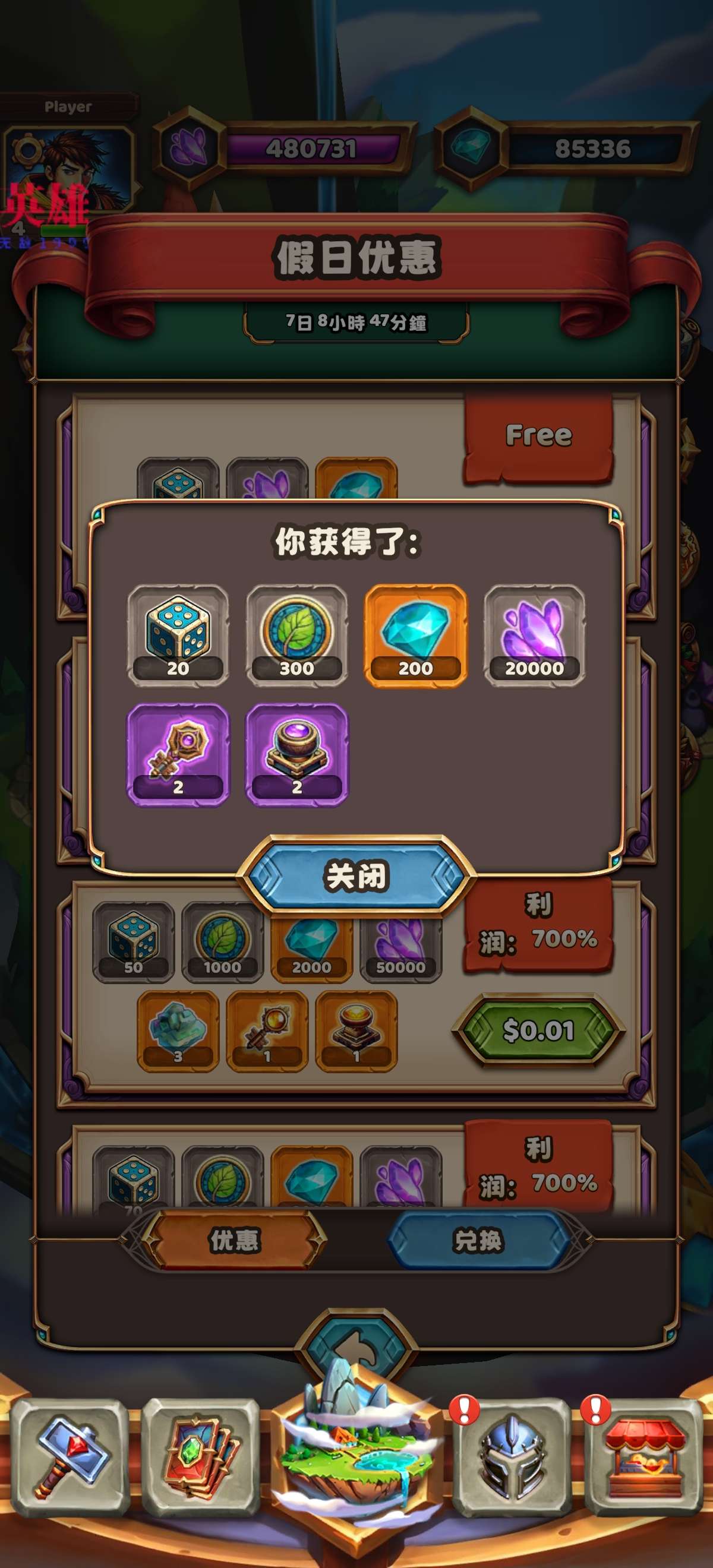 过完2个教程关卡后,就可以通过内购功能购买各种特权了,其中包括免广告的VIP了,但是订阅无法购买(已默认开启)