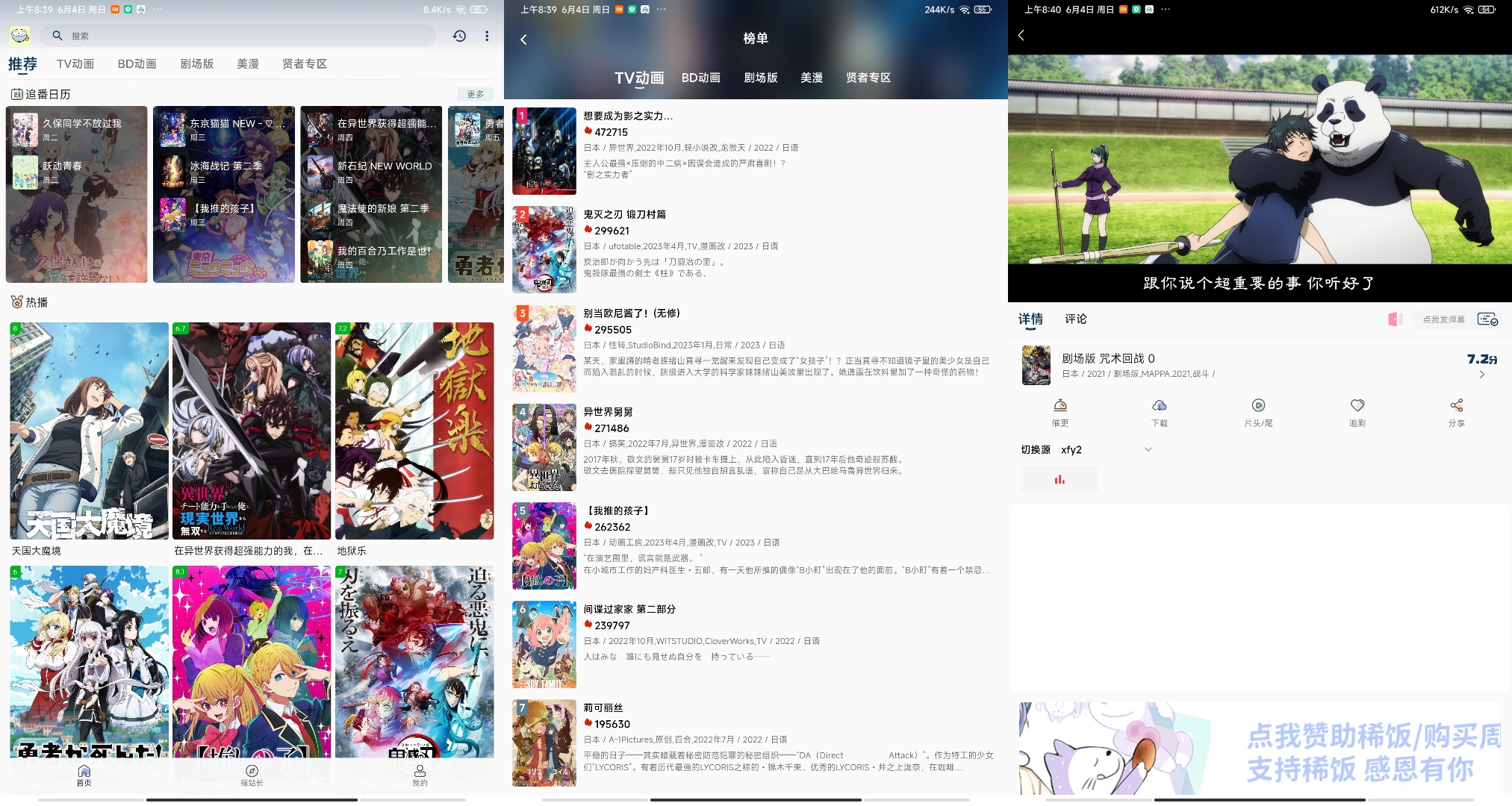 一款非常优秀的二次元追番神器,里面拥有国内外丰富的动漫资源,每日更新番剧,还支持缓存下载和投屏功能,已去除已知广告