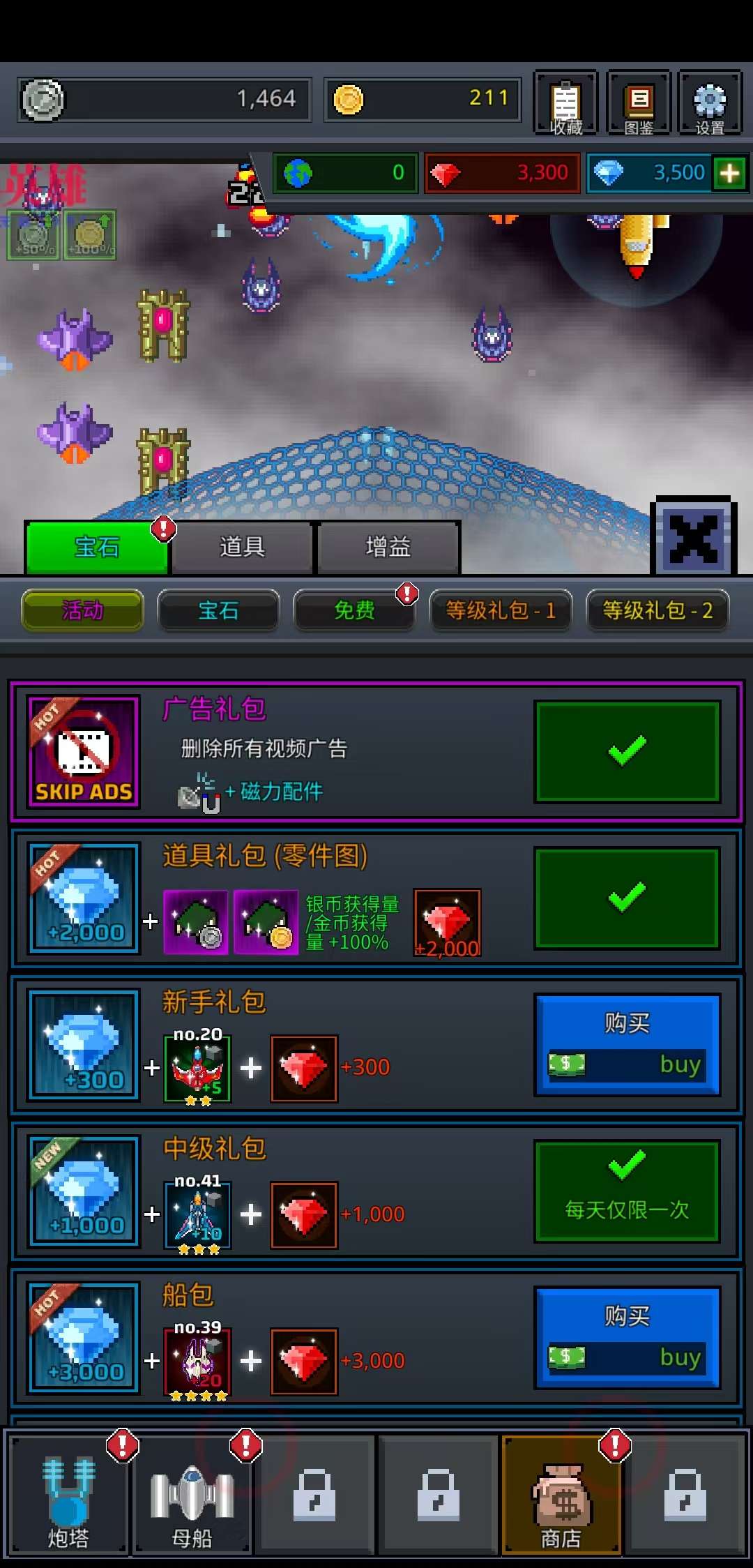 【游戏包名】:com.pixelstar.GrowSpaceship