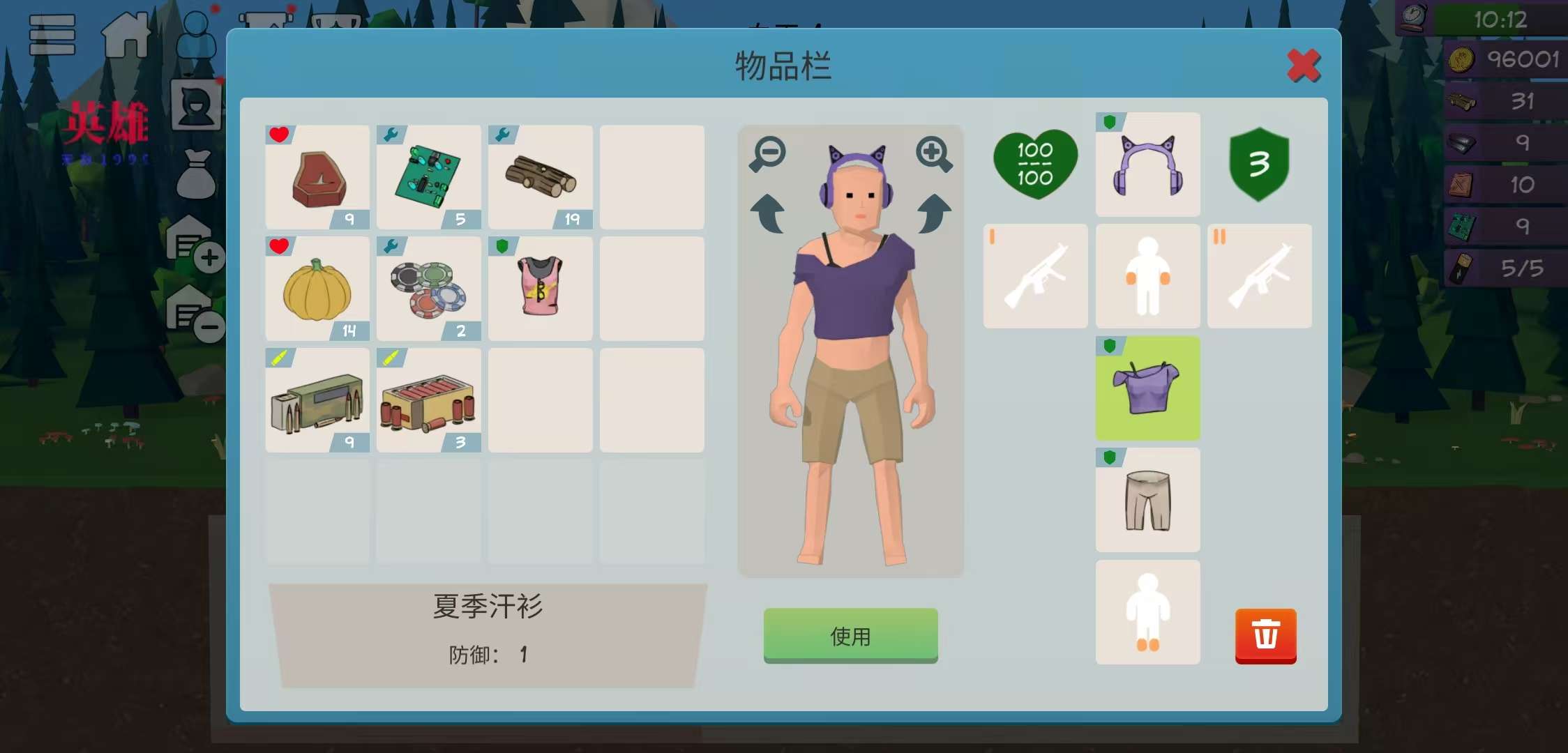 • 完整的玩家背包,可装备最多五件服装和两件武器;