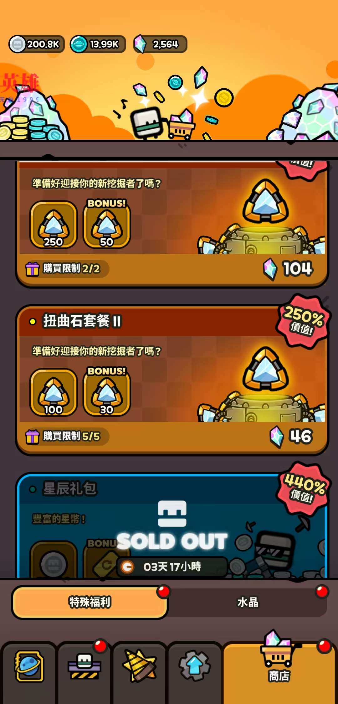 免费内购(水晶商店那一页无法加载,进去会卡死,礼包页面可以加载就能购买,加上能反加水晶影响不大,部分手机礼包页面好像也会卡死,原因未知)