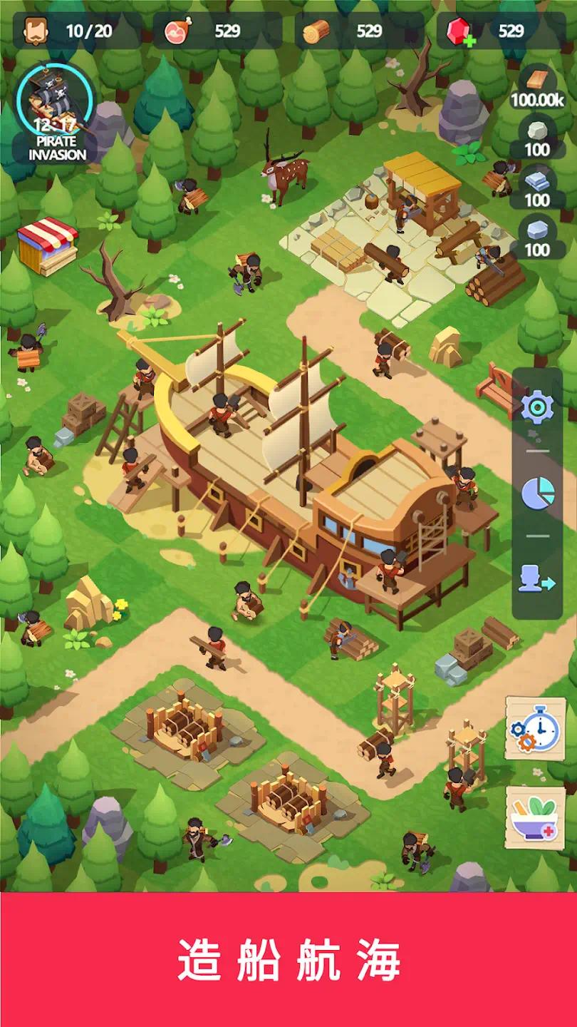 【游戏简介】通过制作一些原始工具来建造岛屿,以保持更多的幸存者的生命...发展自己的领土和人口,并使居民免于饥饿。确保篝火燃烧以驱散雾气,否则每个人都会生病。夜晚很危险,没有进行任何工作。努力修理船并离开这里。