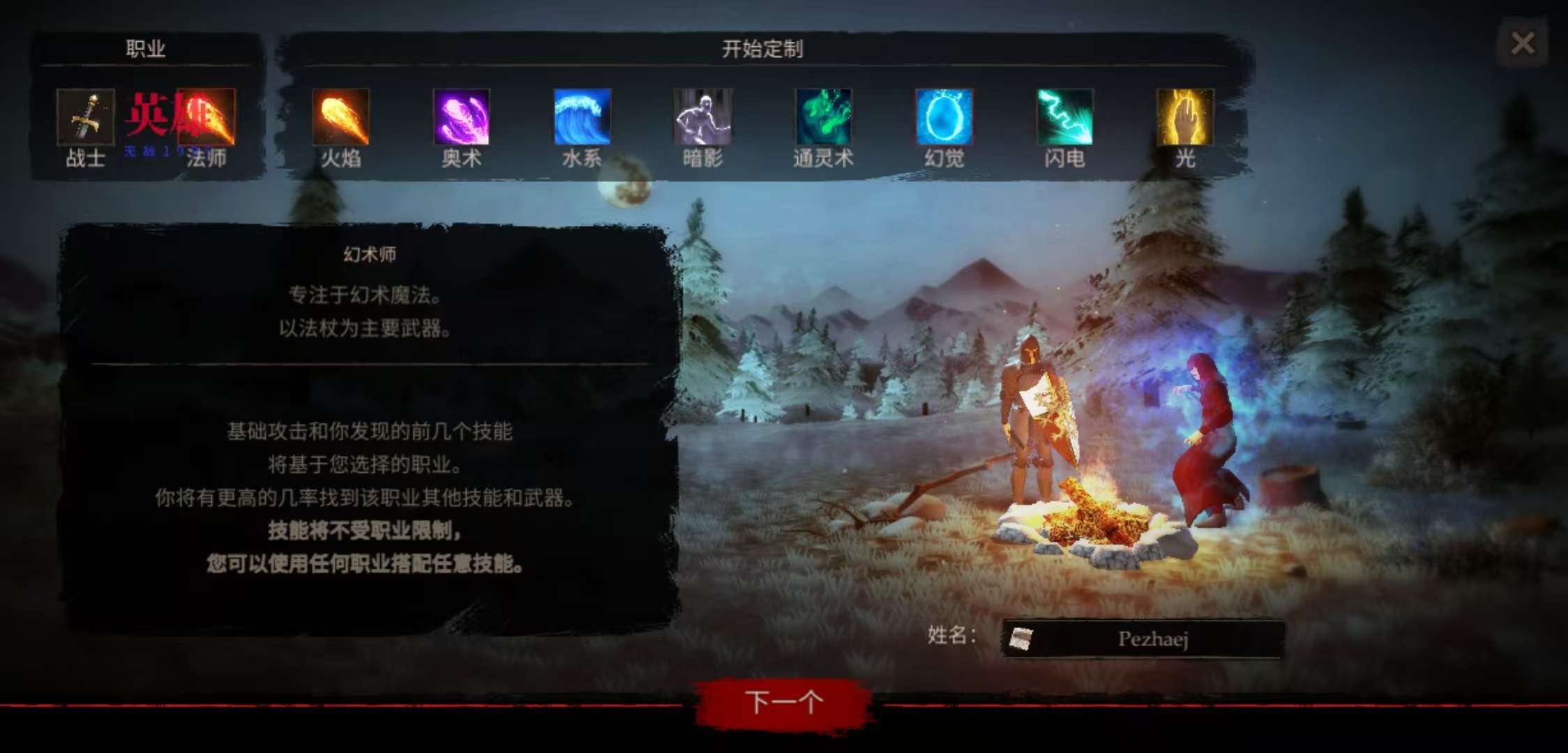 您可以创建 自己的职业,没有任何东西被锁定,扮演挥舞双手剑的火法师或死灵弓箭手。