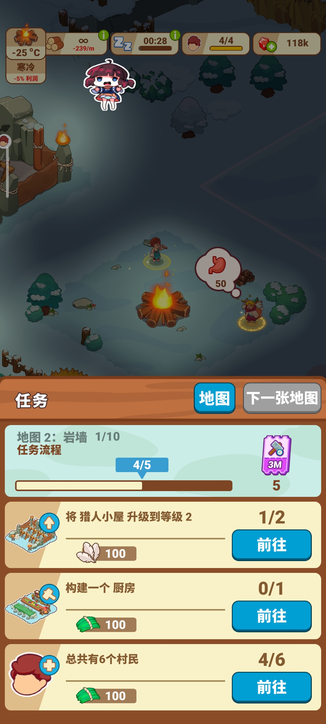 让他们收集资源、照顾日常需求并完成故事任务以解锁进度并获得奖励。