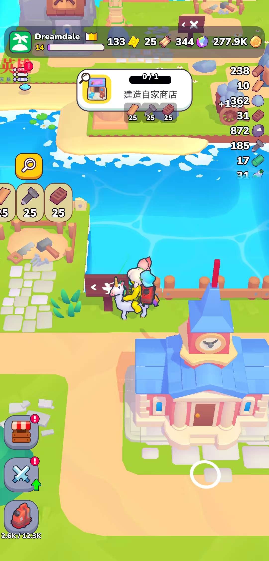 一个无所不包的地方:建造货仓来储藏你采集来的各种资源,升级建筑物和背包来加快贸易速度,从而赚取更多金币。