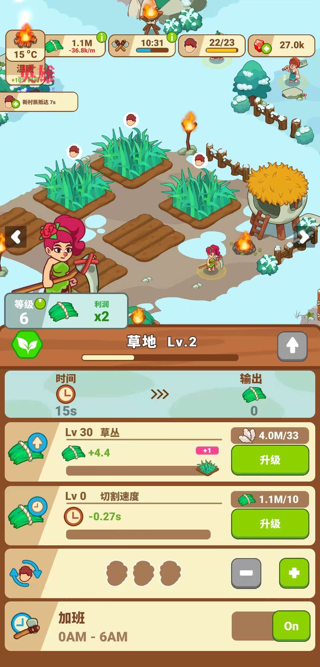 人们根据一天中的时间自动工作、吃饭或睡觉。了解如何分配工人和管理人们需要的基本物品,并设置生产量。让我们让你的村庄变得更好。