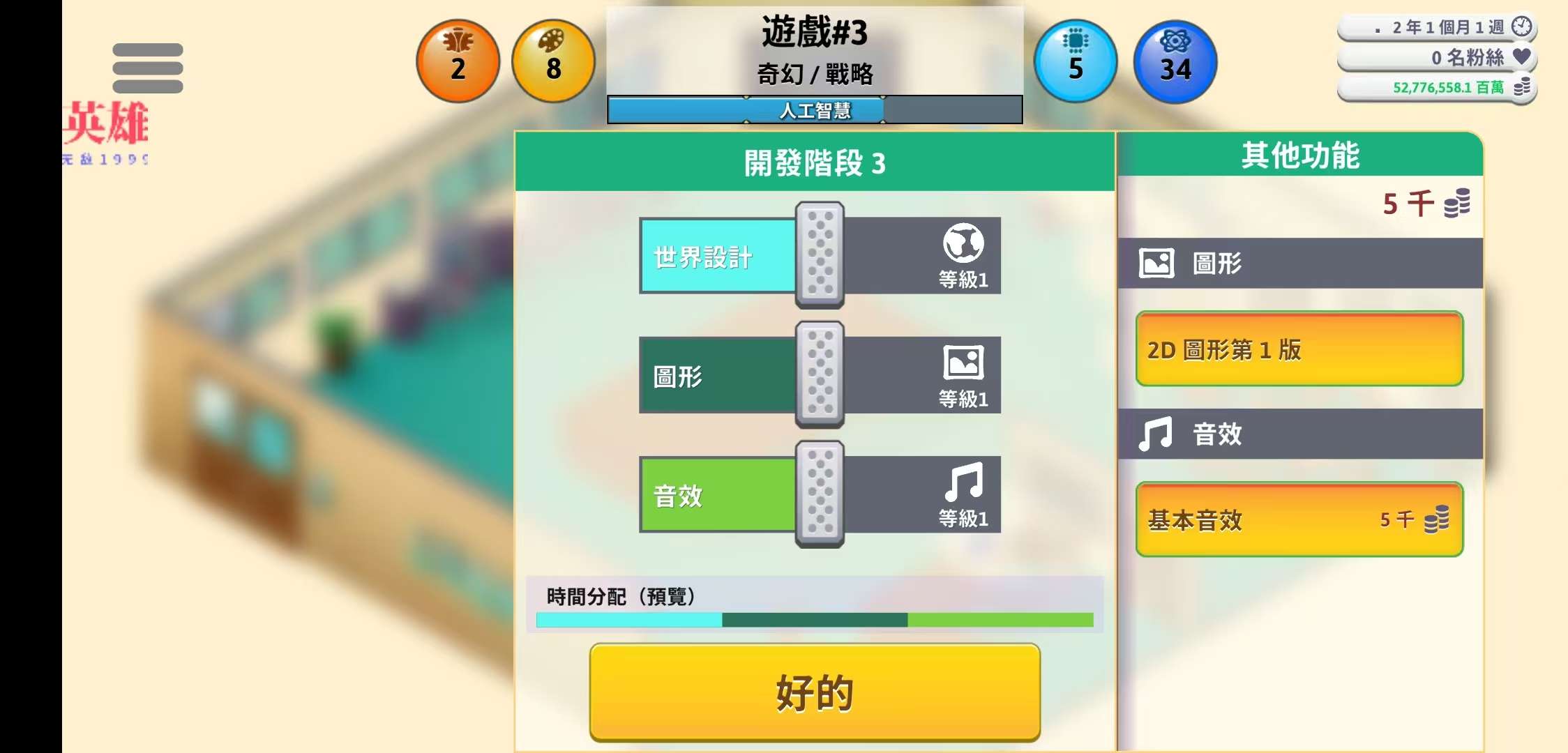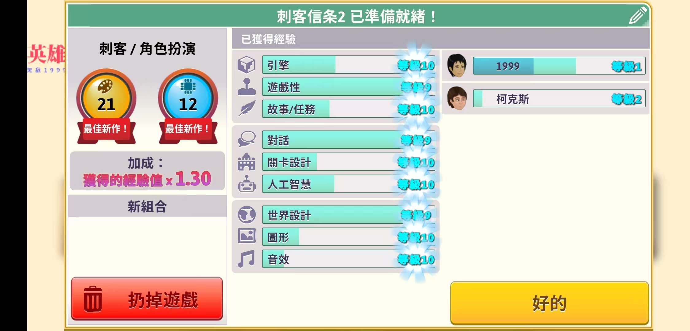 一旦您成功发布了一些游戏,您就可以搬进自己的办公室并组建世界一流的开发团队。雇用员工,培训他们并解锁新选项。