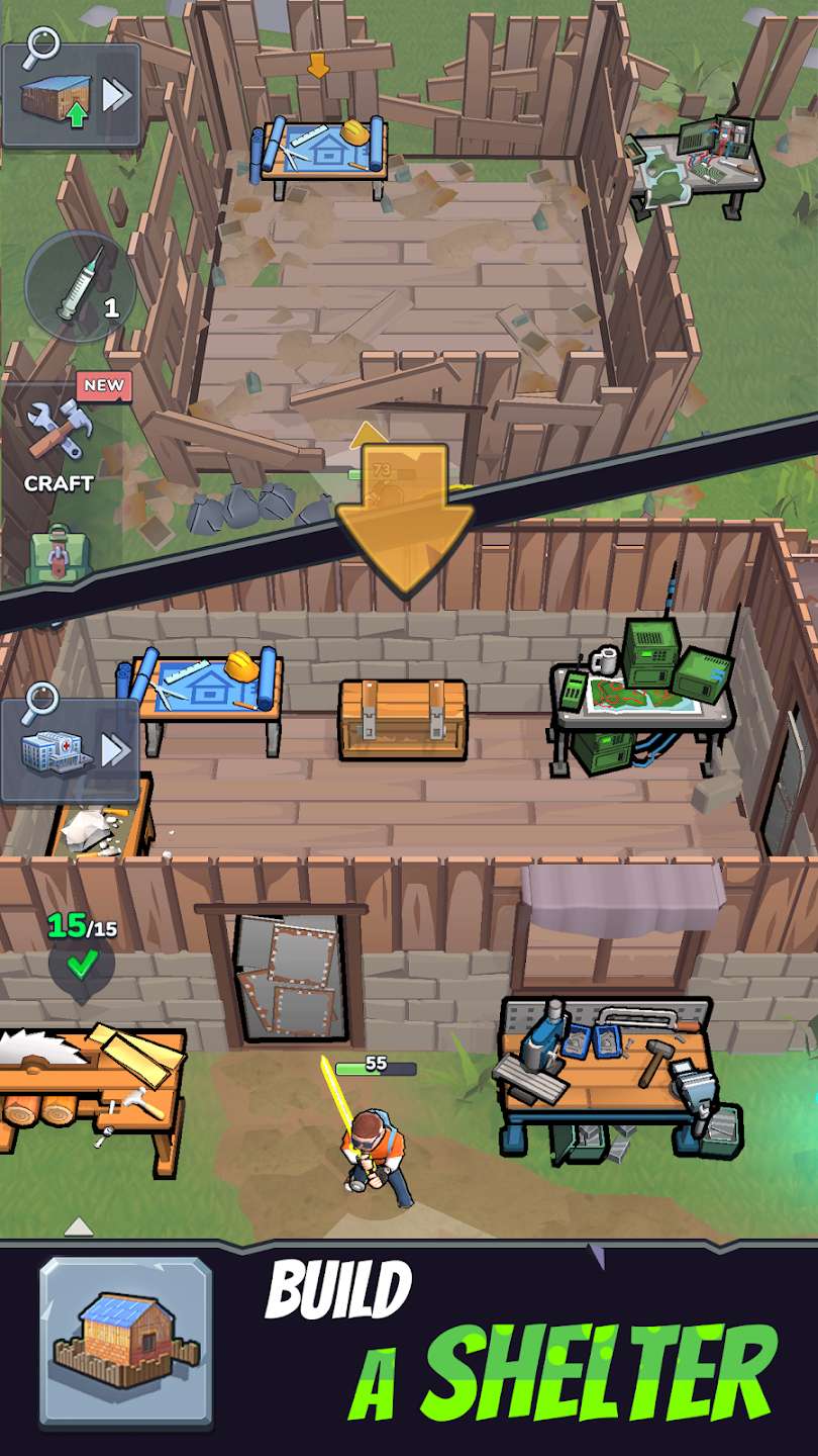 地点,地点,地点 – 近十几个不同的地点等着你,每个地点都有不同的挑战和奖励:例如,前往锯木厂获取原木,然后你可以用它们来建造庇护所和防御工事。探索这些不同的区域并消灭僵尸,磨练你的生存技能,别忘了尝试结识其他幸存者,他们可以加入你的家庭庇护所。