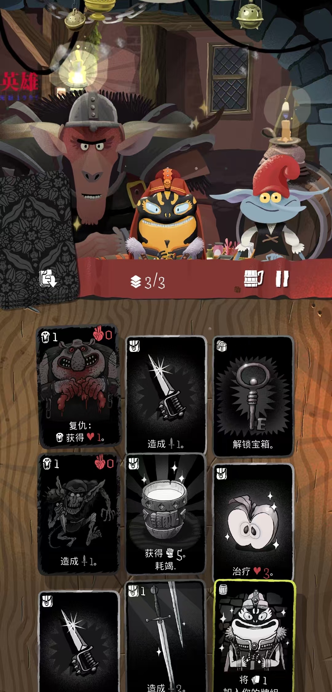 在这款单人卡牌游戏中,你要周游世界、访问舒适的酒馆、与狡猾的怪物对战、夺取闪亮的宝物。