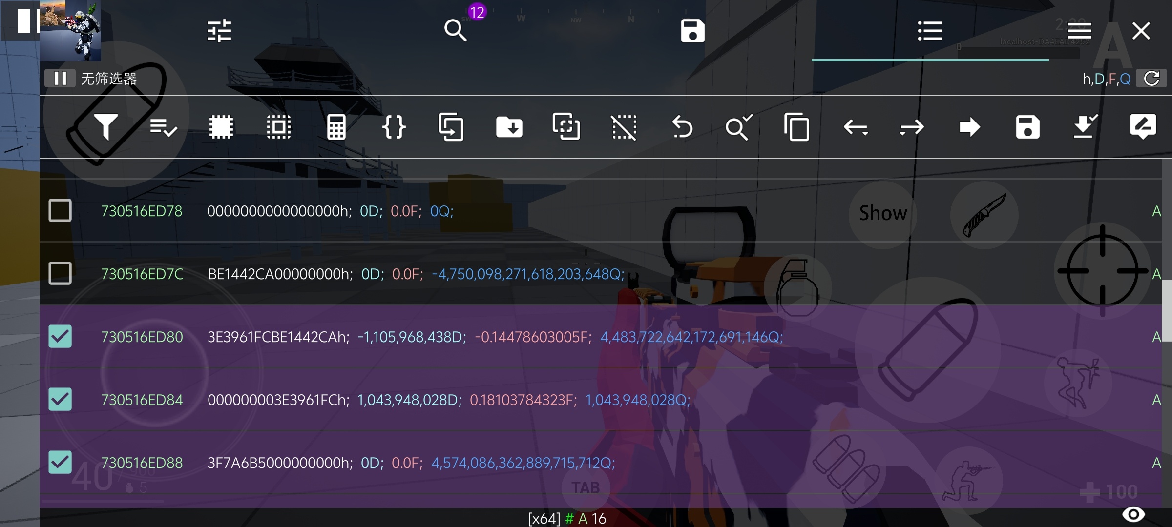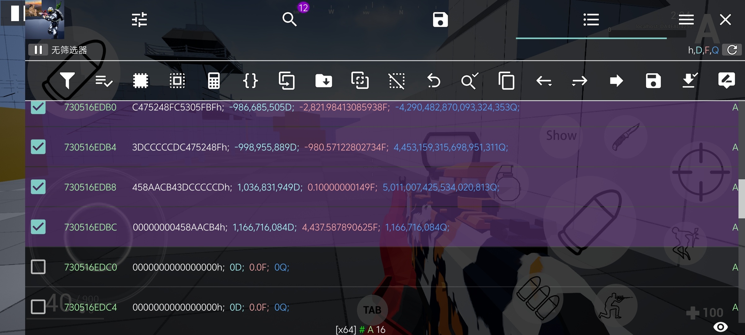 可以使用模糊A内存 F类型搜索100,转动视角点有变化,重新操作