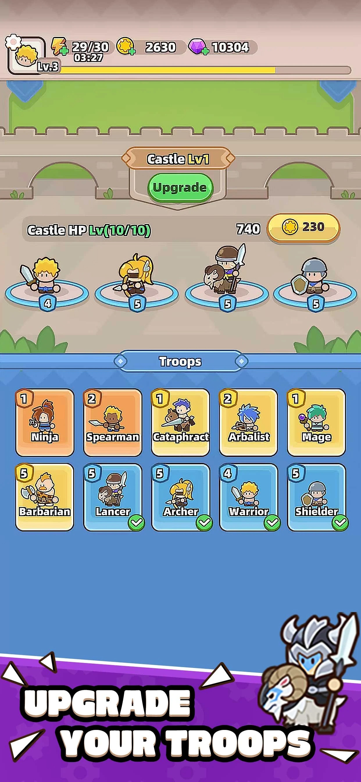在你的冒险中,你将解锁 10 多种独特的兵种:坚韧的步兵、远程弓箭手、盾牌兵,甚至传奇魔法骑士……每种兵种都拥有独特的技能和升级路径。升级、强化、进化——将普通小队打造成精锐部队,见证堡垒威力飙升,直面更强大的敌人。