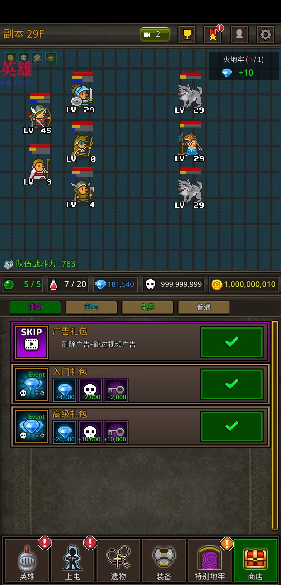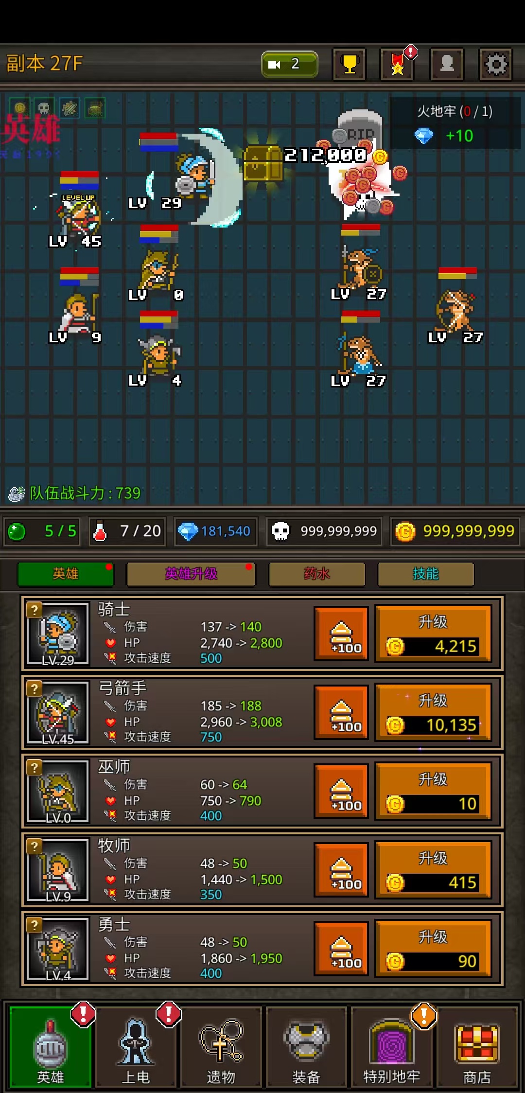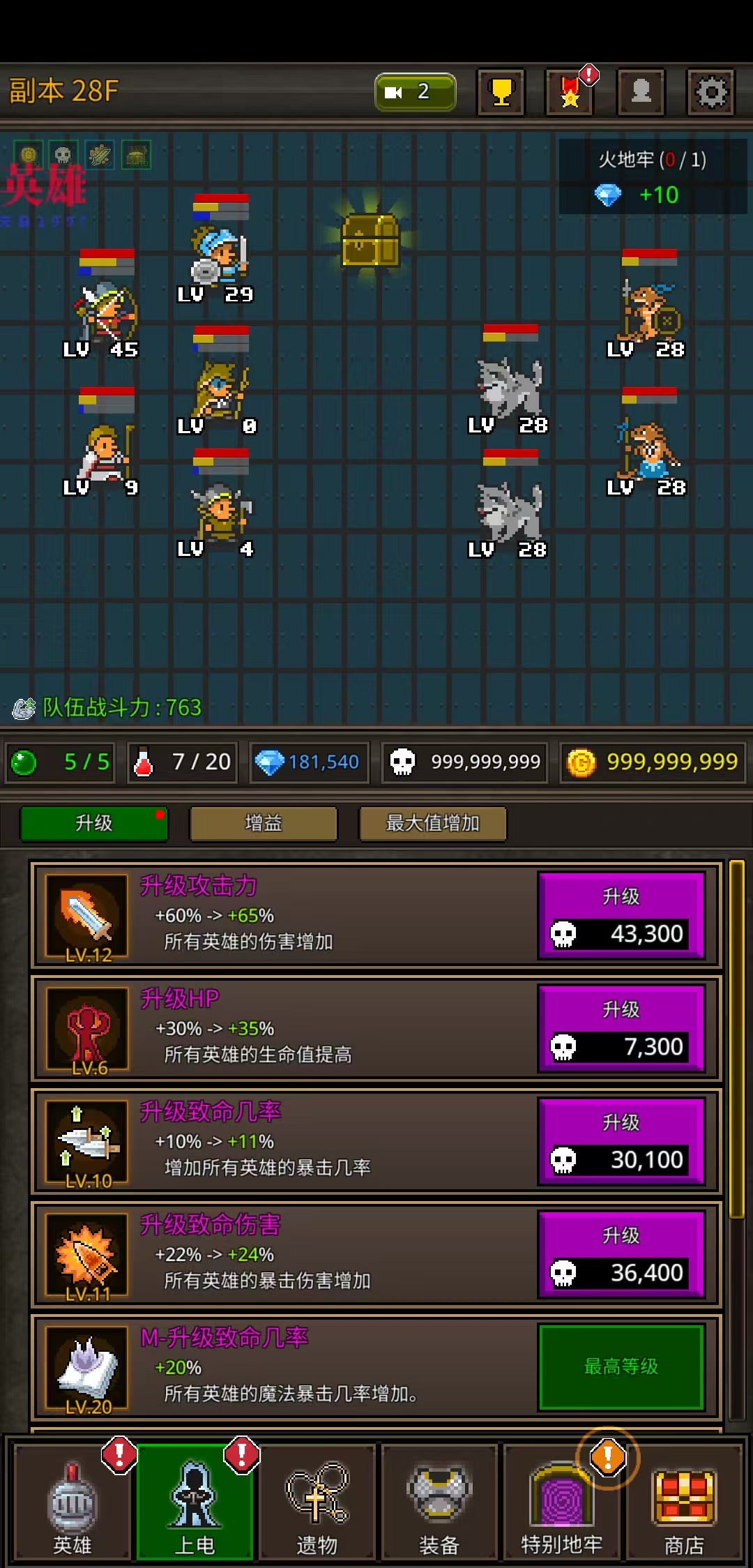 资源无限(触发任意英雄属性变动变无限,金币、骨头、钥匙、金牌都变无限,新增钻石、各种宝石等变无限)