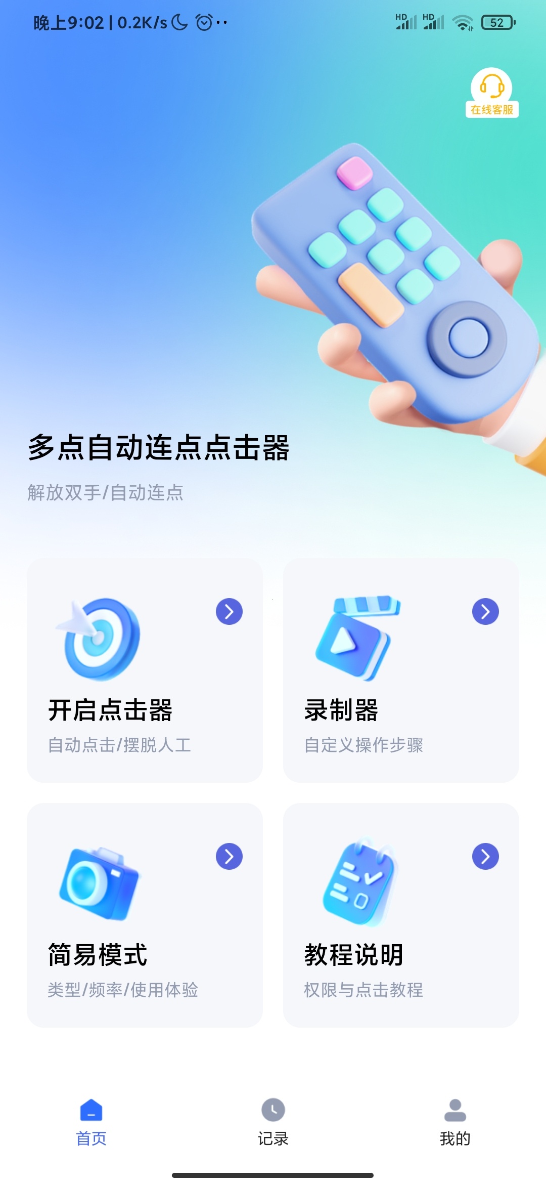 界面简洁易上手,可自由设定多个点击位置、点击频率和持续时间,不管是游戏高频连点还是应用重复点击都能适配,能精准匹配需求实现个性化点击,帮用户避免手指疲劳 。