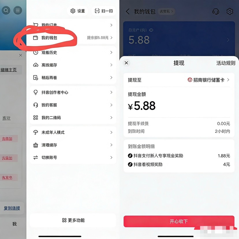 创建完看包就会有5.88-15.88的额,可以直接提