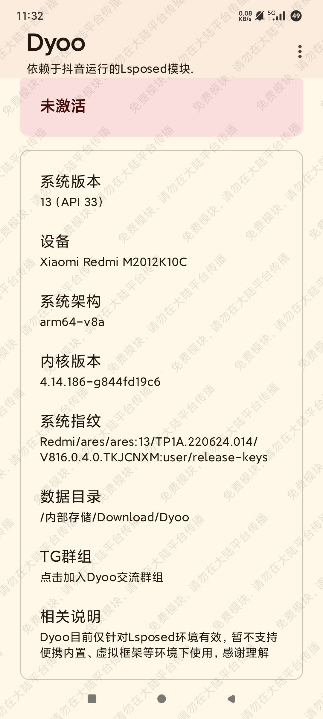 【应 用 介 绍】:最新出的一款全新针对抖音打造的Lsposed模块软件,Dyoo模块apk最新版,软件需要搭配Lsposed框架和抖音才可以使用,支持帮助你去水印,视频过滤功能,聊天隐藏,消息防撤回,自定义顶部菜单等功能,还有全屏沉浸式播放可以选择,更多功能可以自己测试,不懂Lsposed模块框架的最好先看看网上视频教程。