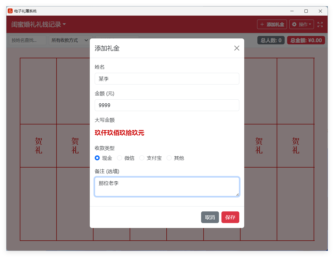 【资源介绍】:一款电子礼簿 - 轻松统计礼单