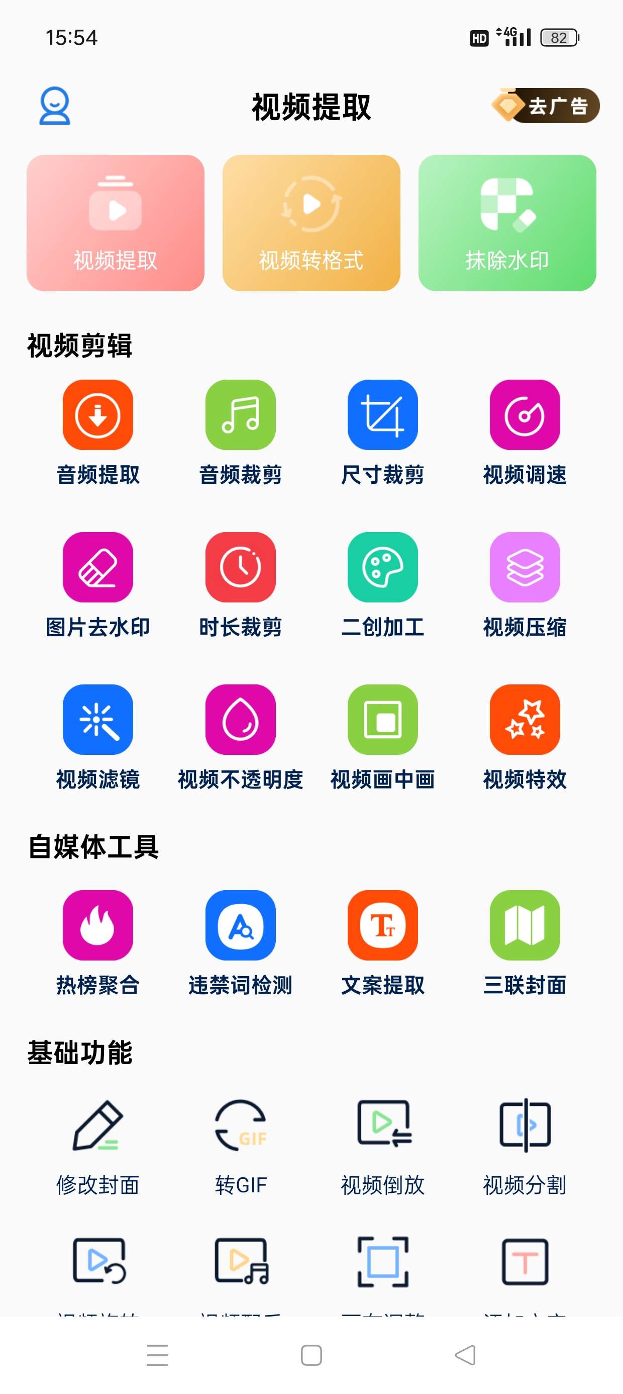 视频提取是一款不错的素材处理工具,包含AI创作,素材提取,格式转换等,自媒体人的好工具;