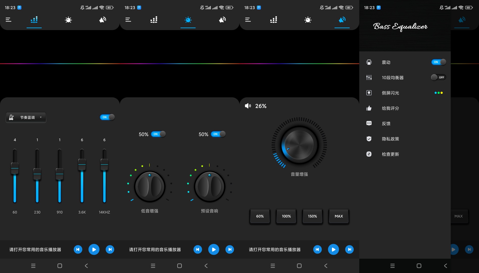【官方介绍】:低音助推器和声音增强器是一款专为android设备设计的音频优化软件,旨在为用户带来极致的聆听体验。通过精细调节音频参数,这款软件能够显著提升低音效果,并增强整体音质,无论是听音乐、观看视频还是进行语音通话,都能让用户享受到更加饱满、震撼的声音效果。