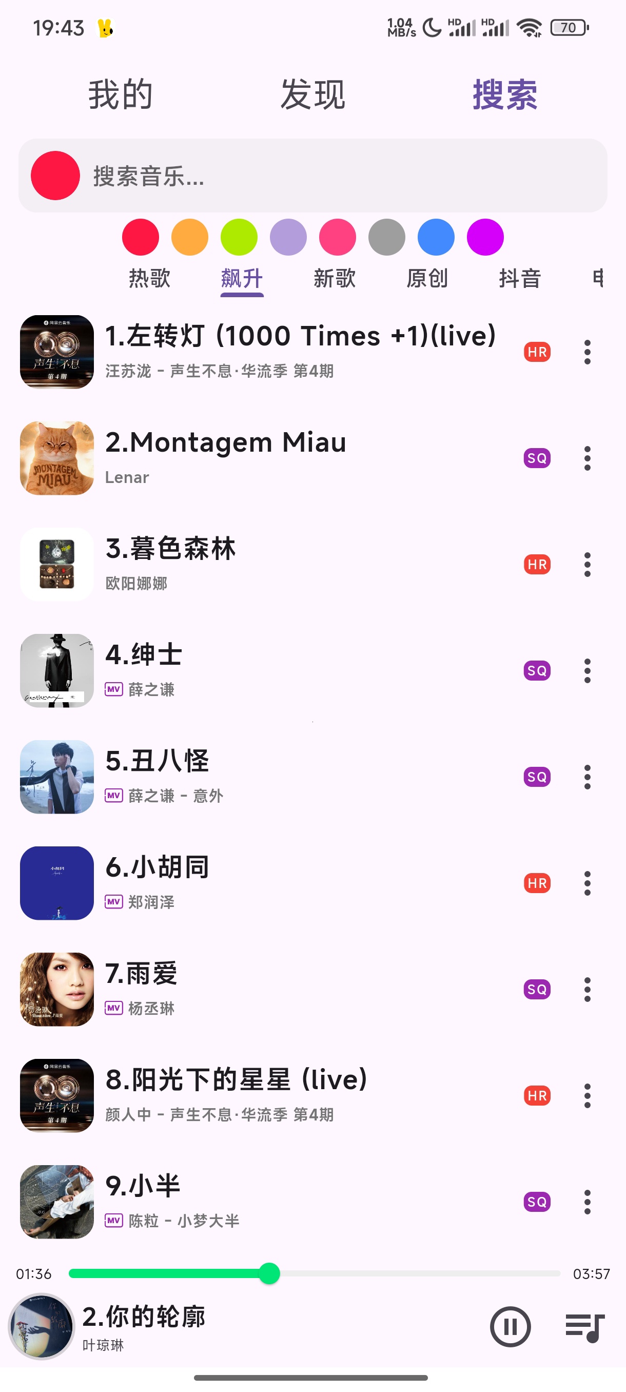 分类榜单齐全,设热歌、飙升、新歌、抖音等多个榜单分类,能实时追踪流行音乐趋势,满足不同听歌喜好。
