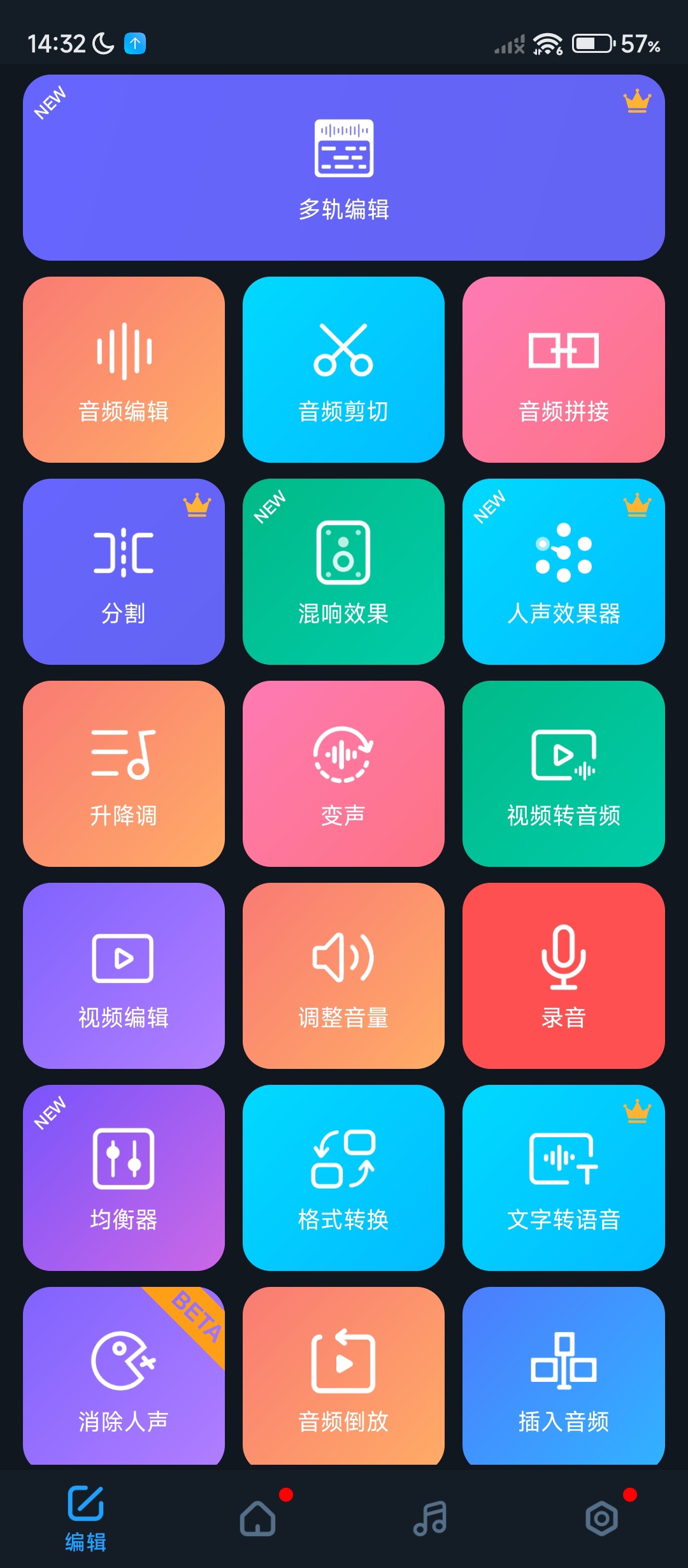 【应用简介】超级音乐编辑器是一款全能型移动端音频处理工具,集毫秒级剪辑、多轨混音、AI变声、格式转换等核心功能于一体。支持12+音视频格式互转,内置均衡器与丰富音效,可轻松提取视频音频、制作专属铃声。界面简洁直观,零门槛操作搭配专业级精度,无广告干扰,批量处理功能高效便捷,适配短视频创作、播客剪辑等多场景,满足新手与专业用户的多样化音频创作需求!