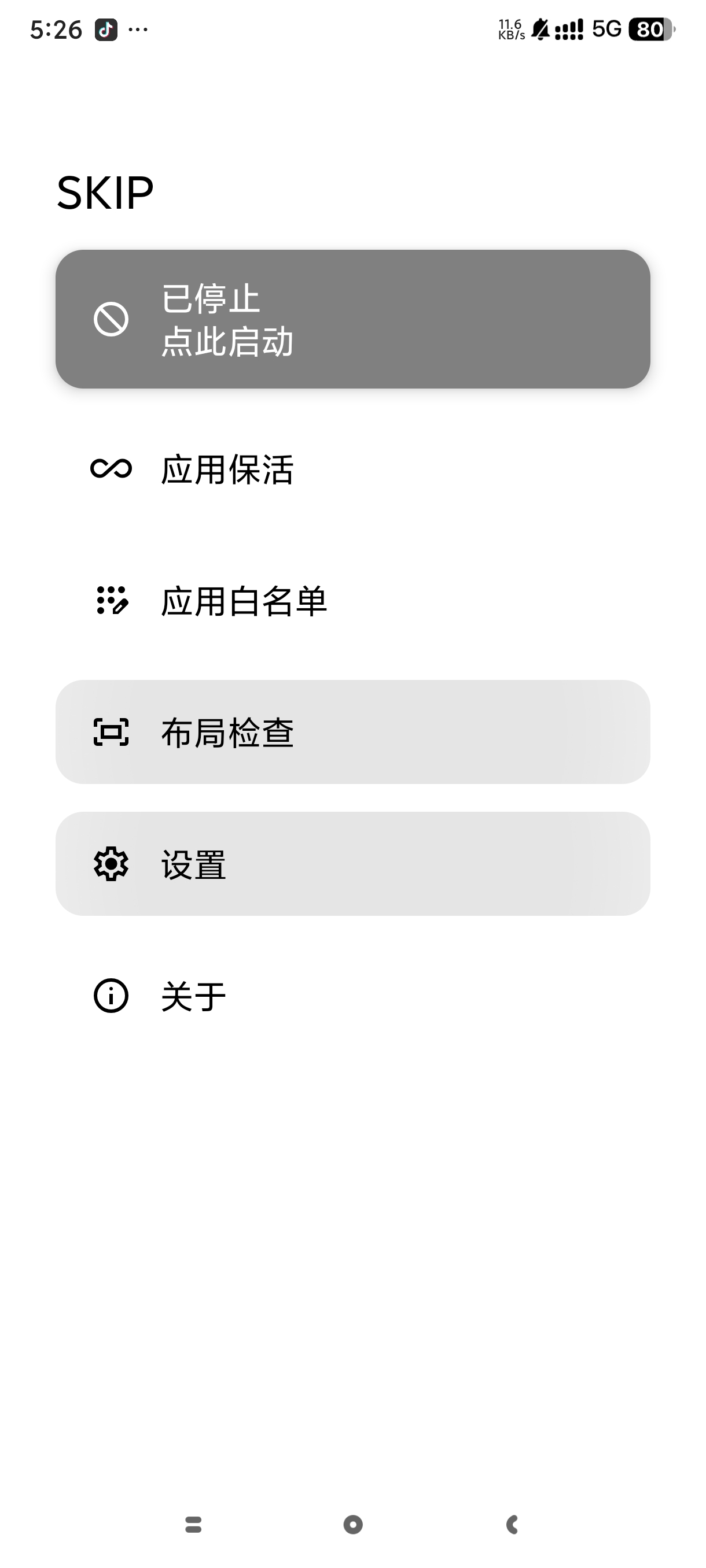 【应 用 介 绍】:SKIP是一款手机开源跳过开屏广告软件,软件采用了简洁直观的操作界面、简单易懂的操作方式,相关用户在这里只需设置相应的规则便可以对一系列广告进行去除操作,这样一来就能够为相关用户营造出一个纯净无广告的手机使用环境,再也不用因为误触广告而感到暴躁了。完美兼容不同类型的手机型号并且无需ROOT环境便可以直接使用,着实为相关用户省去了不少麻烦。自动跳过开启页广告,辞别无聊的广告时间。
