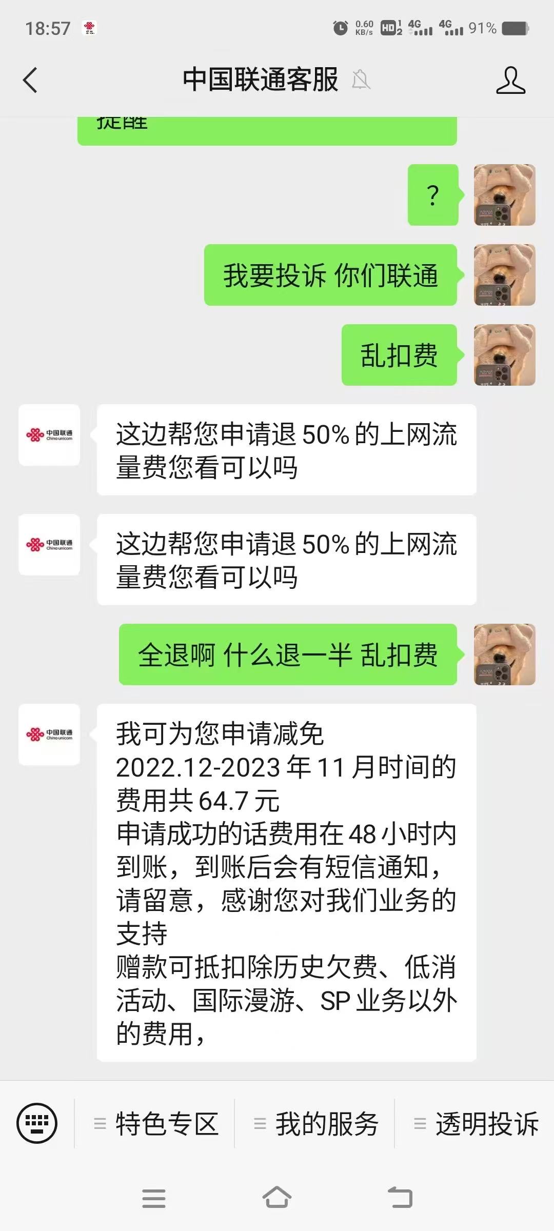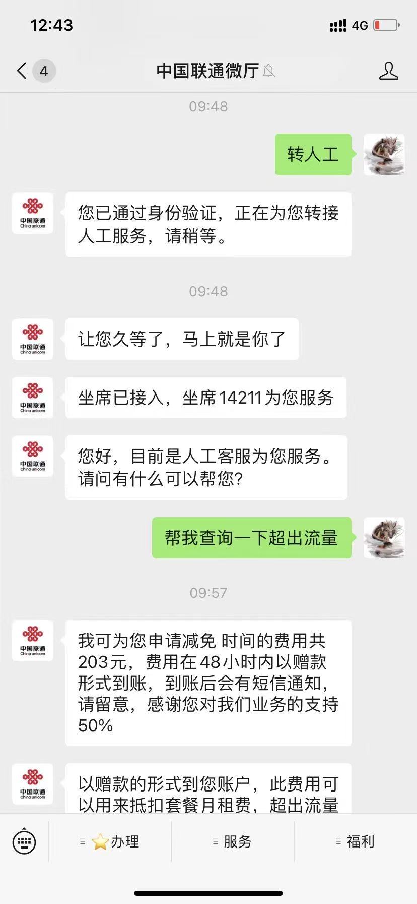 联通去下面公众号发人工客服