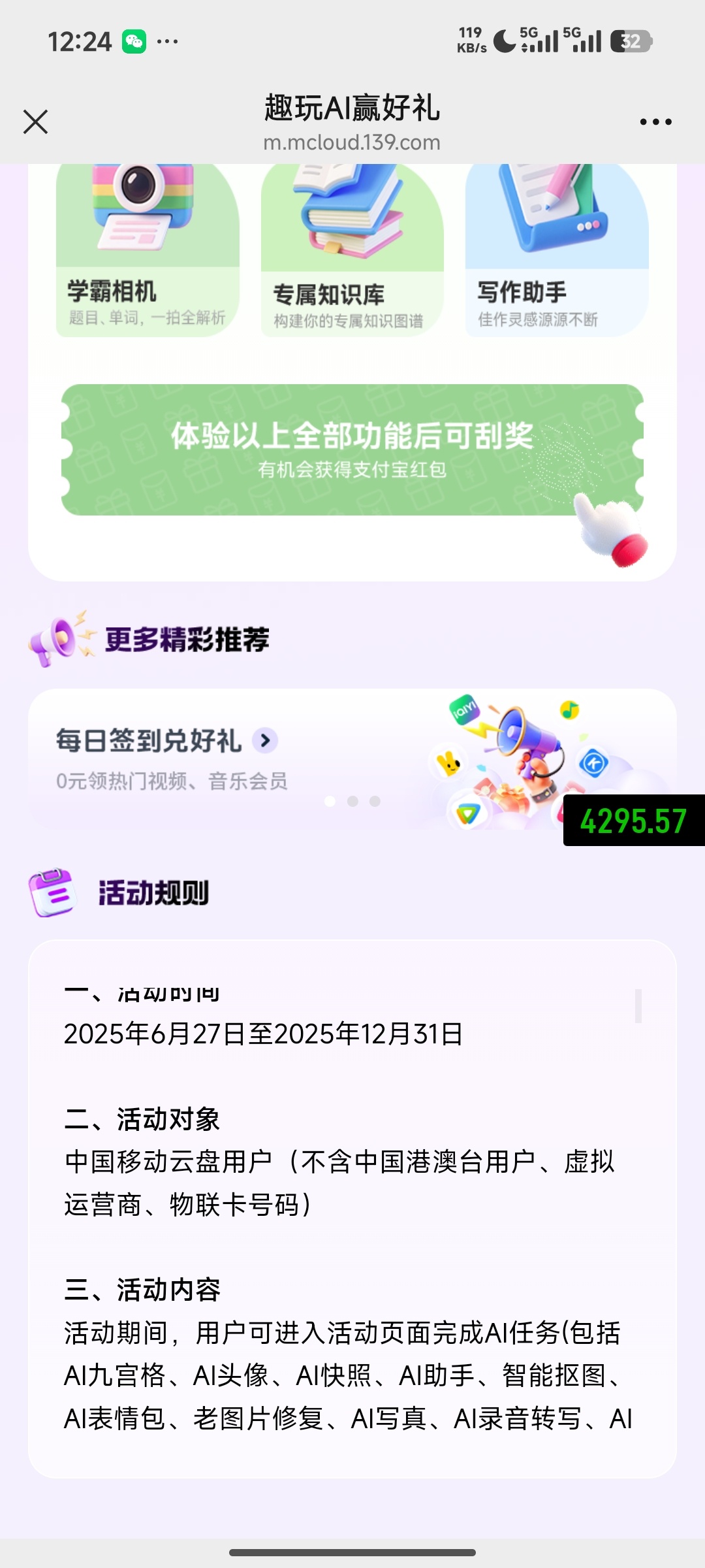 【参与方式】微信打开https://m.mcloud.139.com/portal/cloudCircle/v1/index.html?path=National_playAI&assistCode=fa7147d4fc924df1ad94063092866fab#/National_playAI?assistCode=fa7147d4fc924df1ad94063092866fab