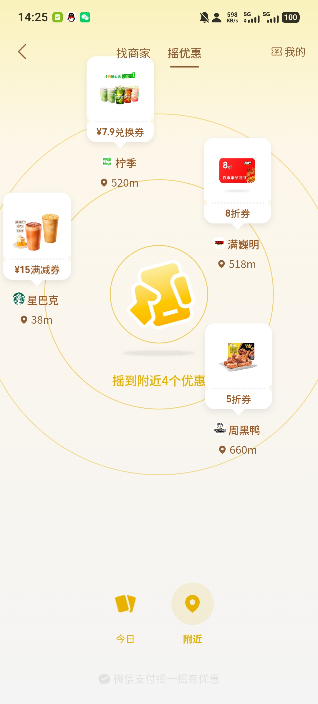 每天一次摇的机会,有各种券立减金和支付抵扣