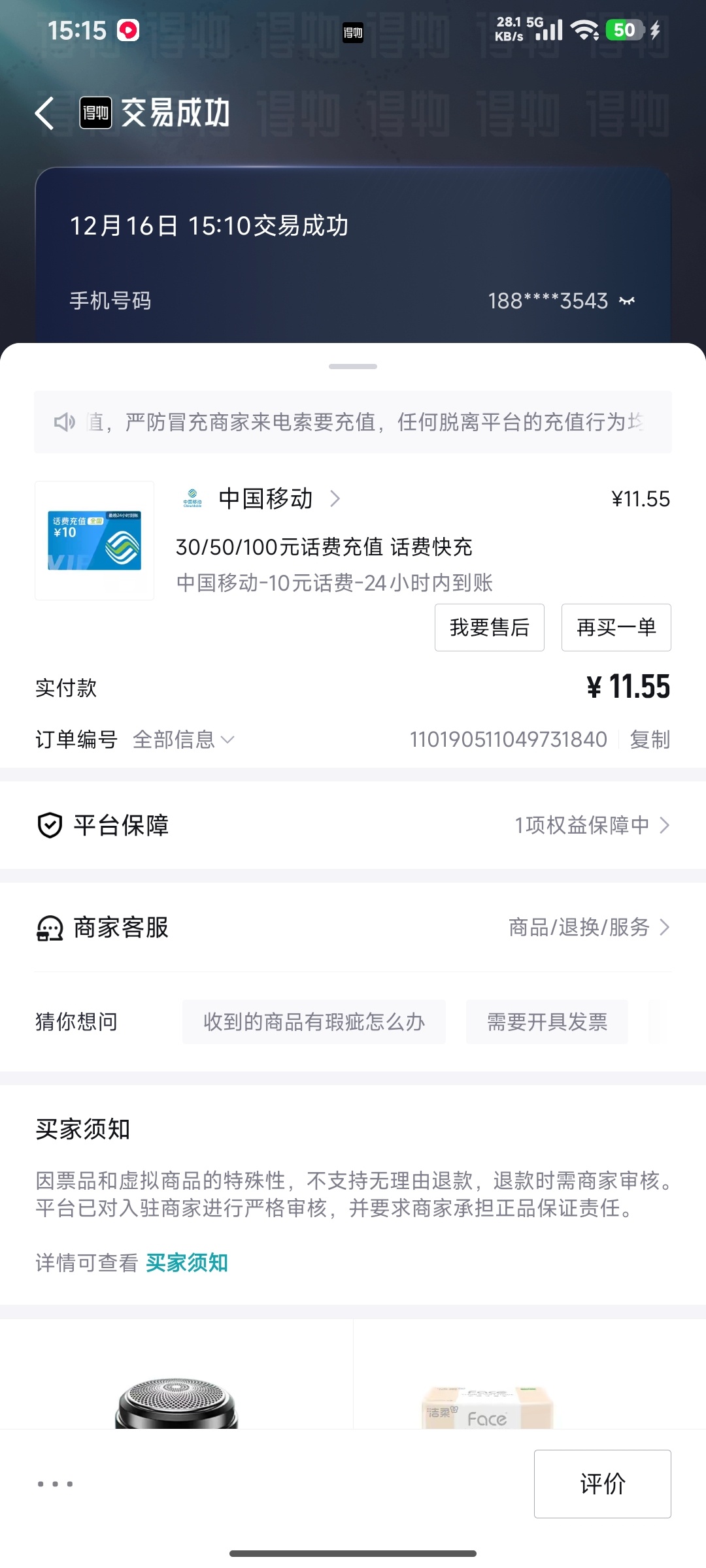 得物app搜话费,找10话费买,提交订单不付款,去我的订单待付款里付,用抖音支付减8.8,可以减两次