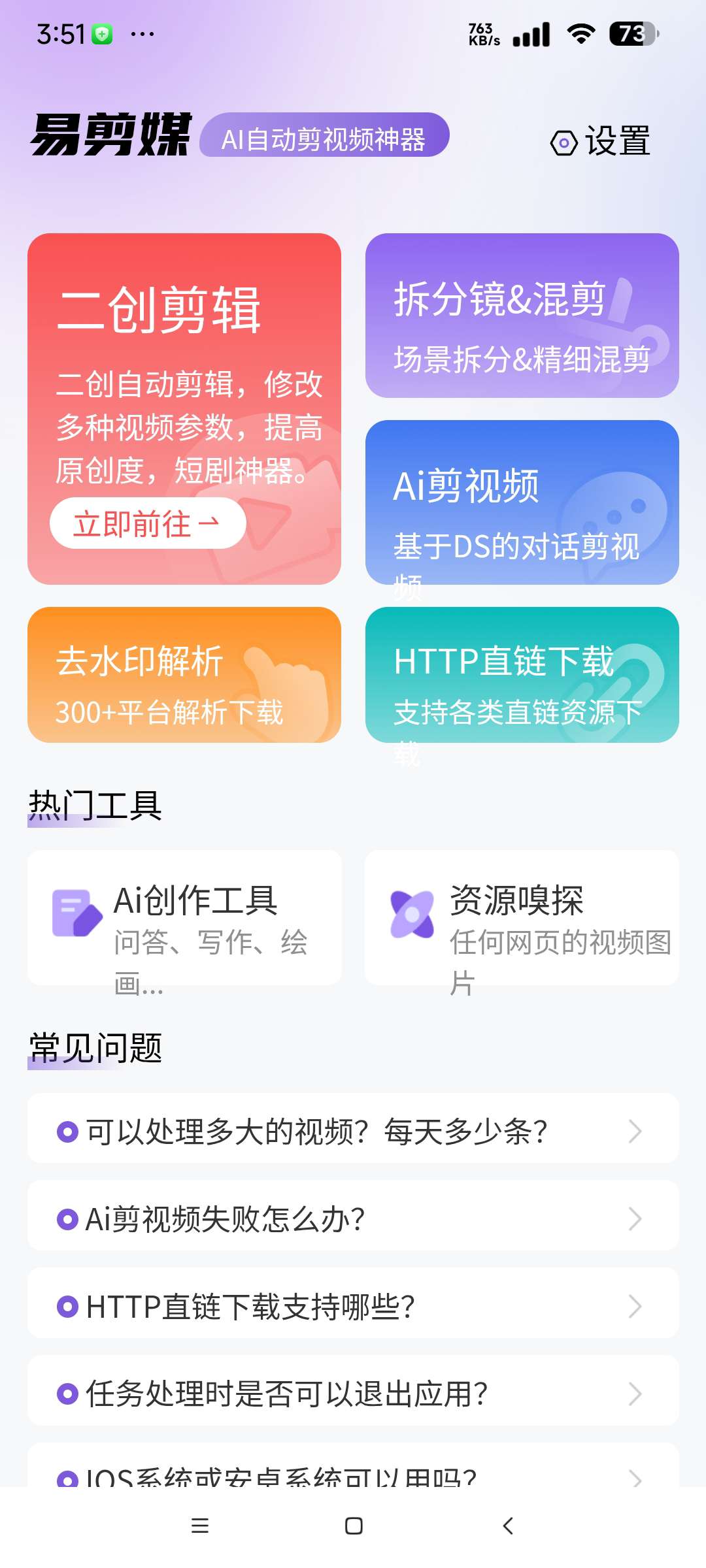 【应用简介】易剪媒是一款纯净无广基于deepseek对话式的AI自动剪视频工具。其只需根据描述的要求以处理命令的形式交给AI自动输出即可,基于DS-V3模型进行分析推理。无需过多复杂操作,适合批量短视频、小白用户粗略剪辑等场景领域。