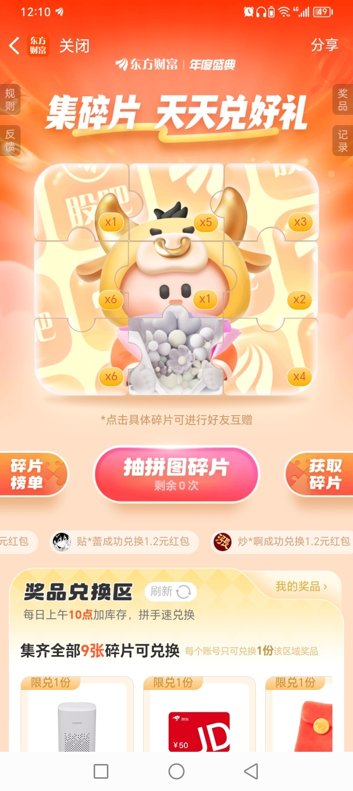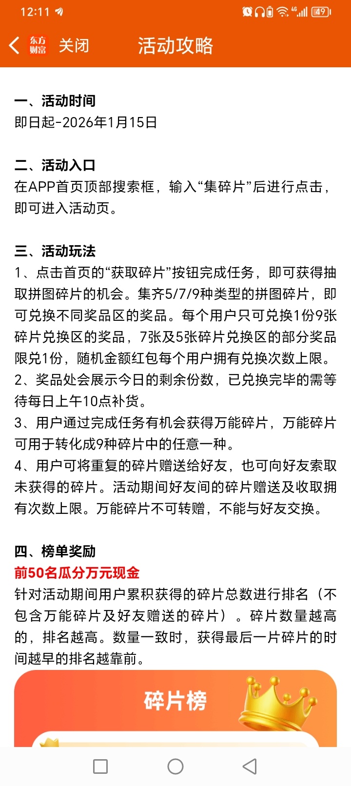 【活动规则】(下载东方财富)(坚持每天做任务获取抽碎片次数)(集满9张可兑大奖)