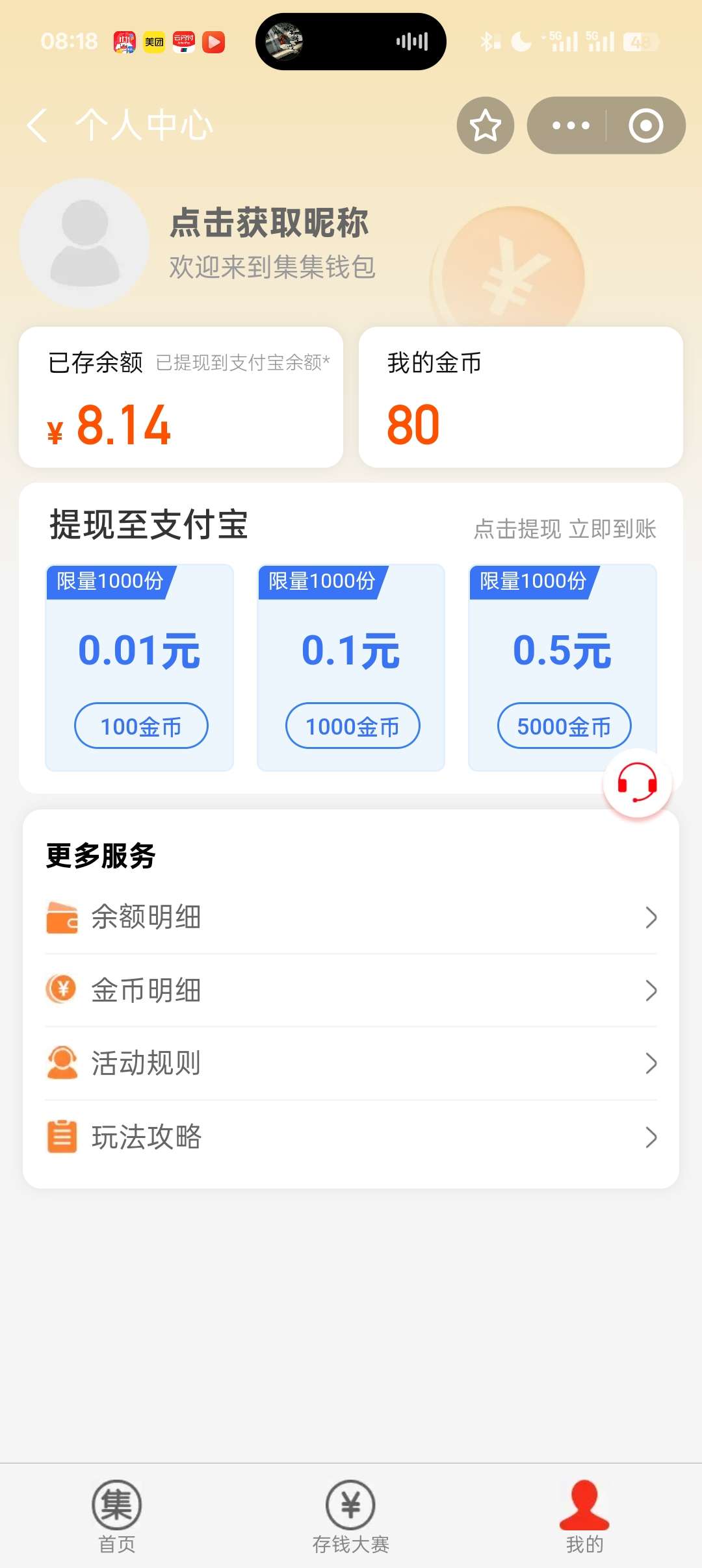 打开支付宝搜索集集钱包,然后看广告,然后提现,然后慢慢提现,一定要有耐心
