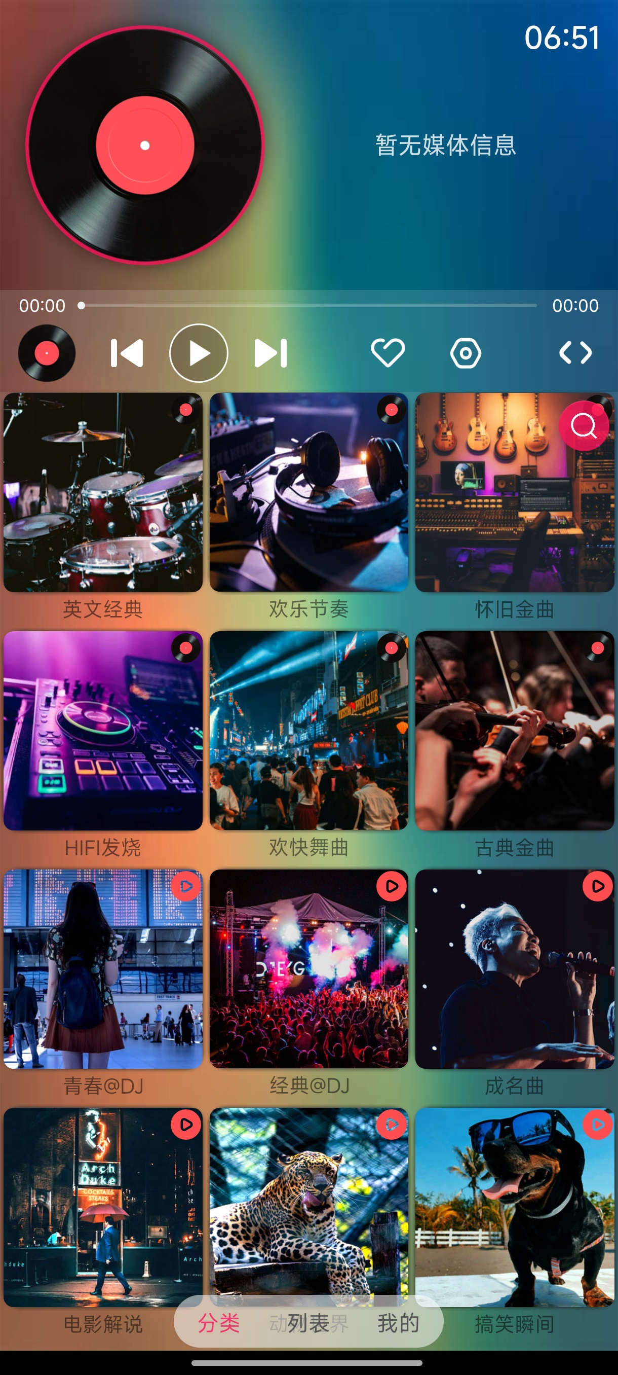 覆盖柔情越鼓、Remix、震撼低音、经典DJ等数十种DJ风格,还收录英文经典、怀旧金曲、搞笑瞬间等非DJ类音频,分类可视化呈现,快速定位喜好内容;